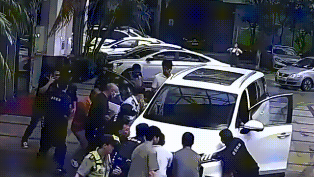 当车辆抬离地面时,宝妈立即抱出孩子,整个救援过程仅仅用时20几秒。
