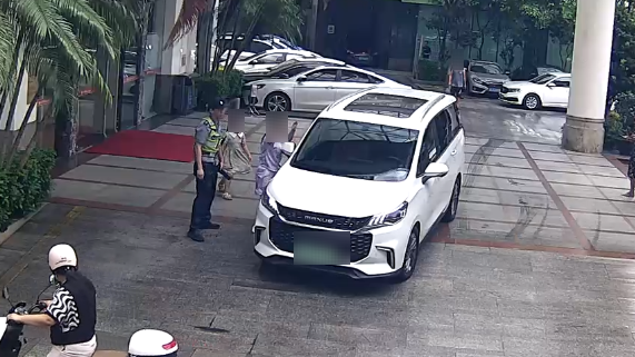 宝妈发现后第一时间拍窗让司机停车。同时,驾车途经此处的警务人员发现情况后也立即连续鸣笛提醒,并迅速上前查看情况。小车驾驶人接到提醒后立即停车。