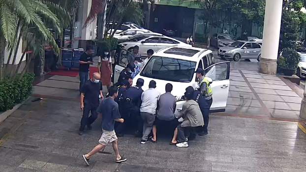 “抬车!抬车!”警务人员与路过的市民齐力抬车展开救援。