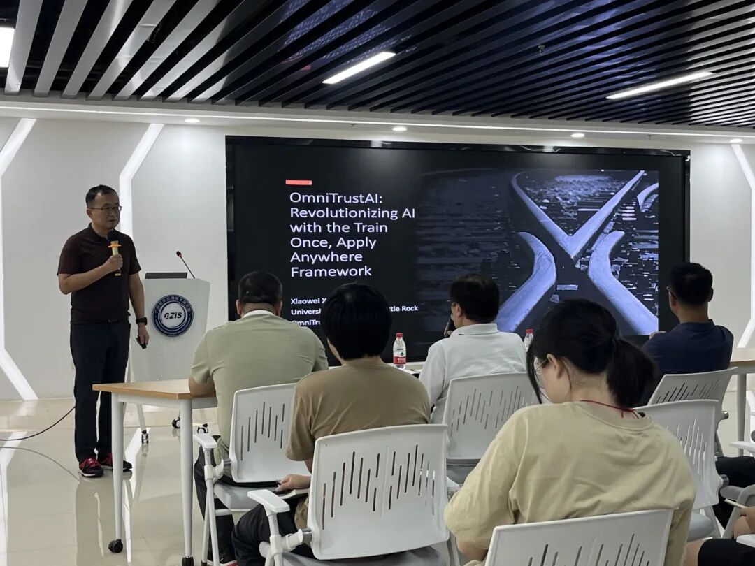 7月11日,广州软件应用技术研究院(简称:广州软件院)在三楼路演厅成功举办“人工智能学术交流会”。会议邀请到美国阿肯色大学小石城分校信息科学系徐晓伟教授,进行了主题为“OmniTrustAI:通过‘一次训练,随处应用’框架革命性地改变人工智能”的学术报告。