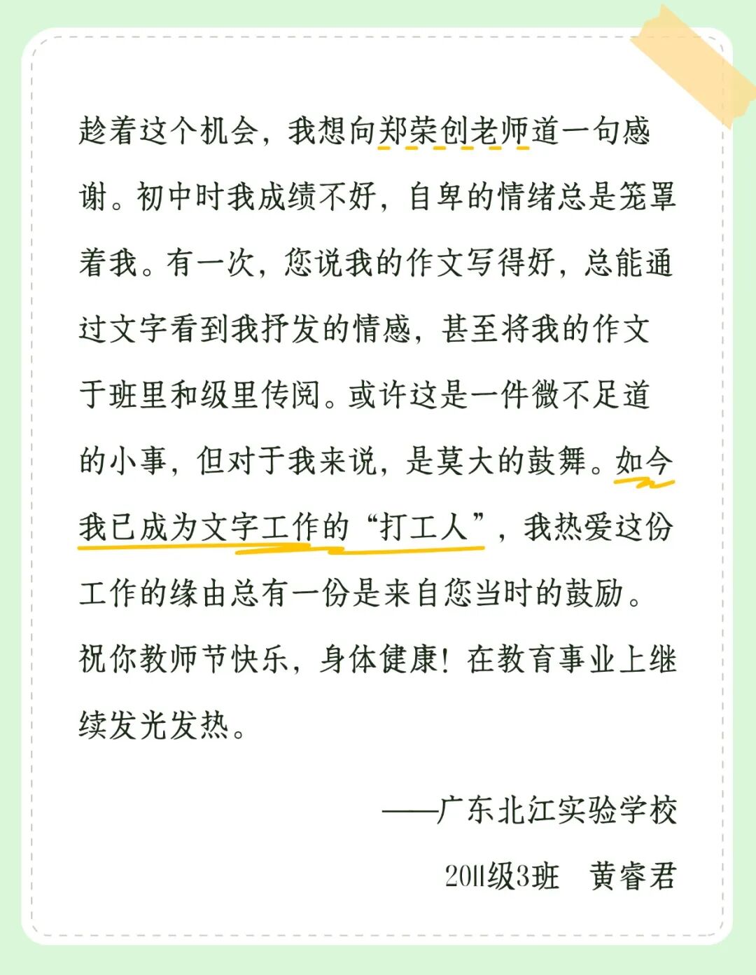 相比每日跟老师们朝夕相处的在校学子,已经毕业的同学在这个特殊的节日,有着不一样的感受。今天,我们来看看他们的心声故事,或许已经成为“大人”的你,也会找到共鸣……