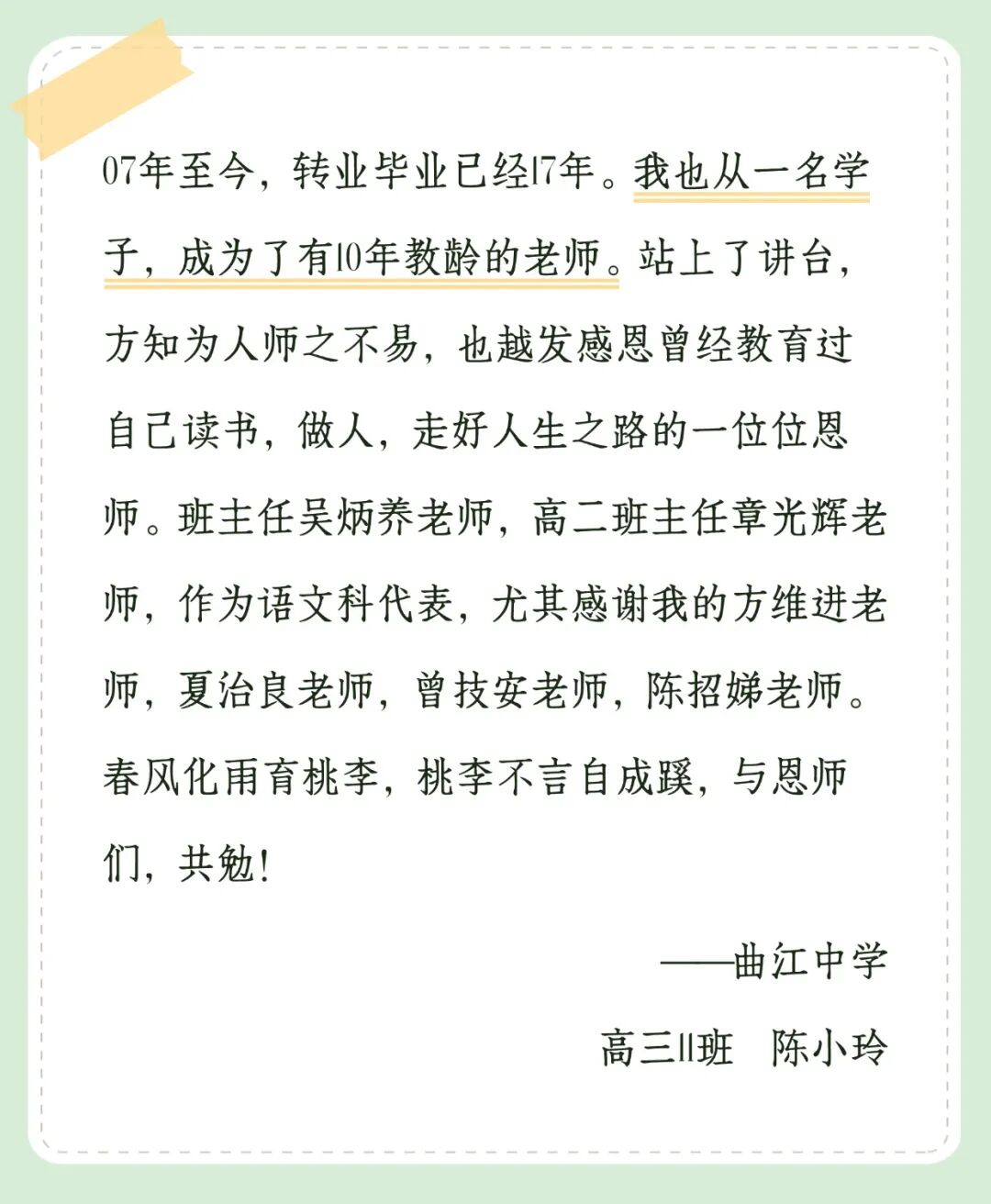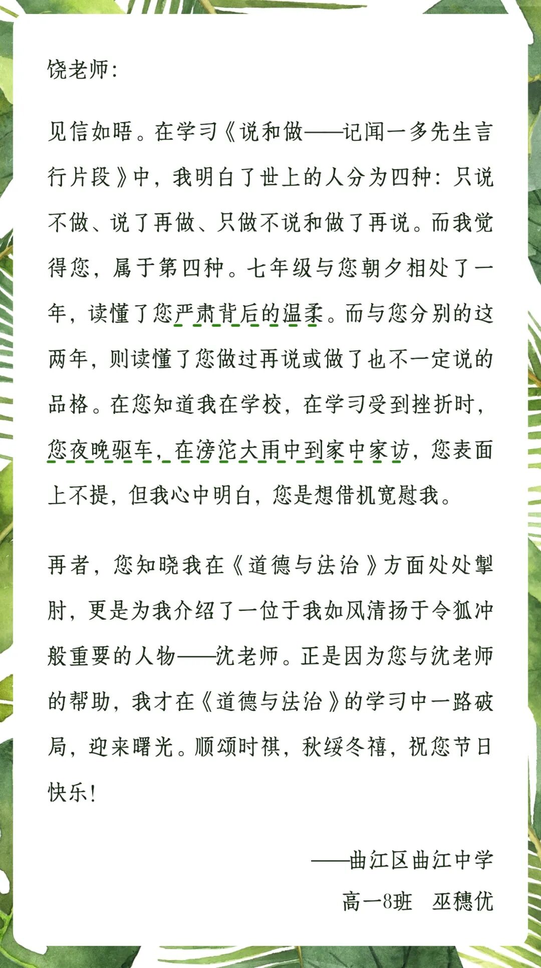 带着老师的教诲和祝福