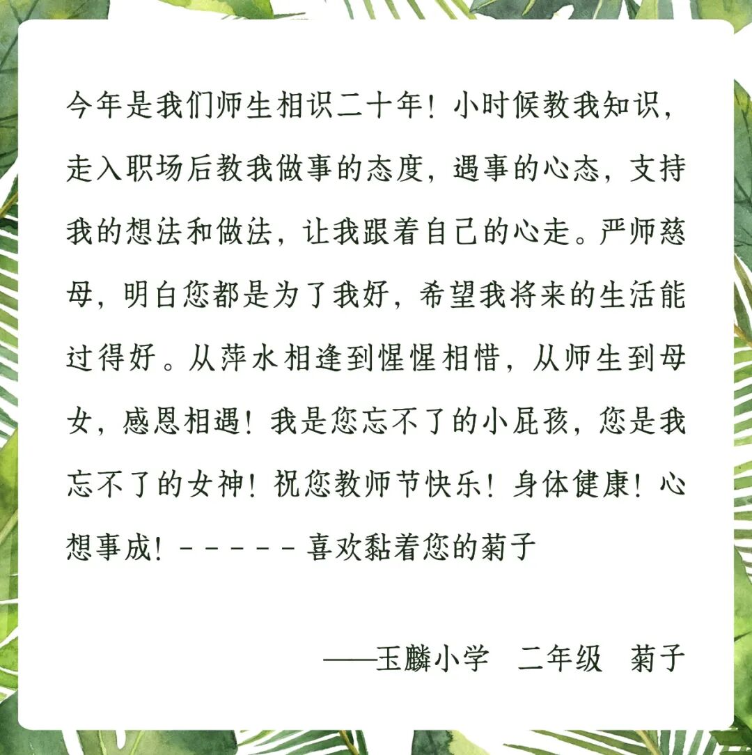 此前,我们发起了“晒出你的‘师’情‘话’意”教师节“花式祝福送老师”征稿活动。上周,我们分享了一波来自在校同学们的祝福。