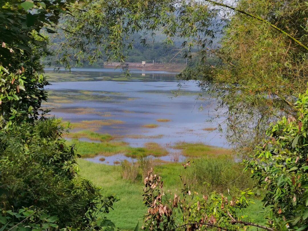 大台水库分为库头和库尾两部分,库头水深呈绿蓝色,有点像九寨沟的水。库尾呈湿地状,有青草浅滩,有芦苇摇曳。可能是由于在高海拔的原因,有些水草已泛黄,在阳光的照耀下色彩丰富而饱和,正如诗云:“四面峰峦青叠嶂,一湖云天靛绮靡。”