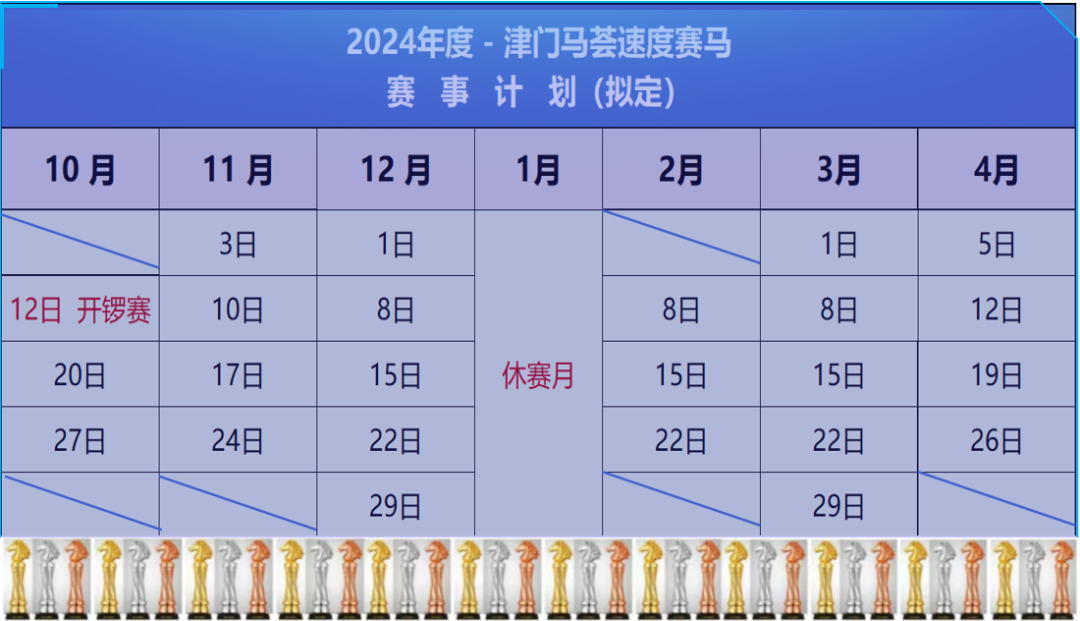 自2024年10月至2025年4月底,将连续举办24个赛马日。单场奖金不低于6万元,除此之外另申请举办中国马术协会国家二级赛事,总奖金不低于500万元。