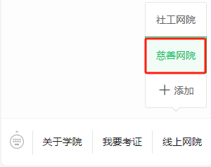 关注“社工学院”公众号—菜单栏—点击【线上网院】-选择慈善网院