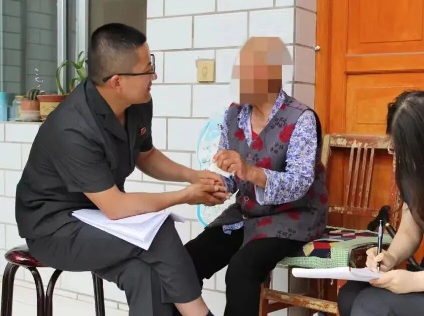 甘肃省镇原县屯字镇某村,院里一位鬓发斑白的老太太,坐在靠椅上紧紧地拽着法官李聪聪的手,像是遇见了主心骨,言语间满是倾诉欲。