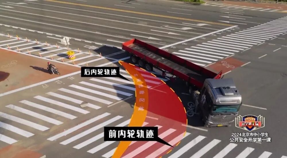 特别是在交叉路口,要特别注意右转的大货车,远离正在转弯的大型车辆,保持足够的安全距离,至少在2米以上。