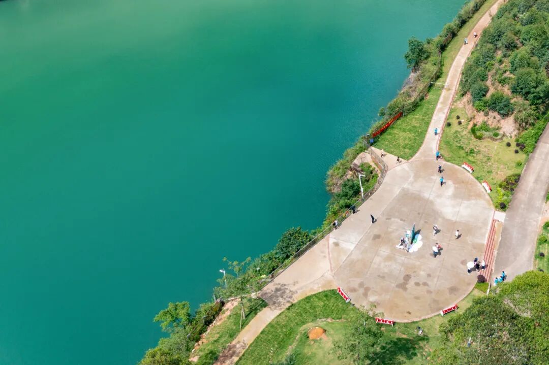 临崖而立,湖面风光尽收眼底