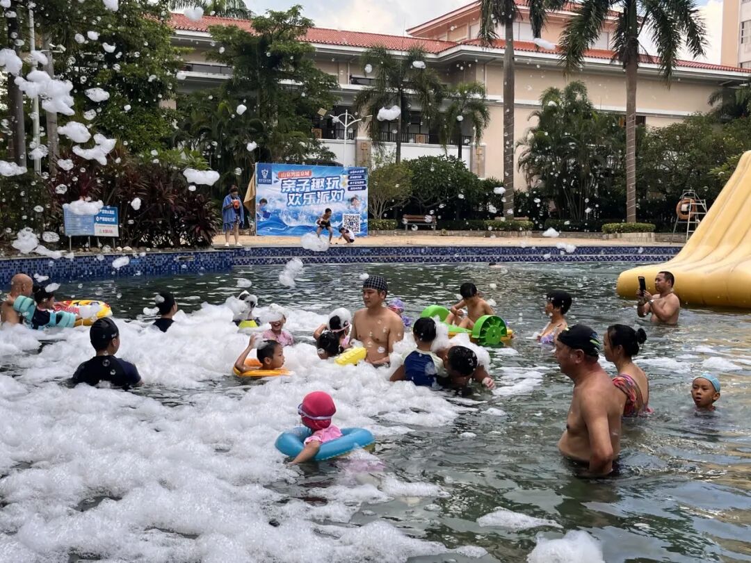 山泉湾温泉城面向游客开展亲子互动游戏、泡泡大作战等活动,以满足游客多样化的亲水游玩需求。