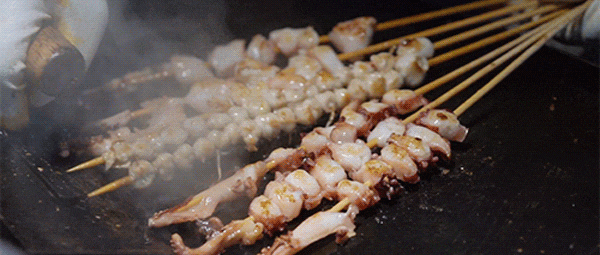 烟雾缭绕的烧烤、滋滋冒油的炸物、