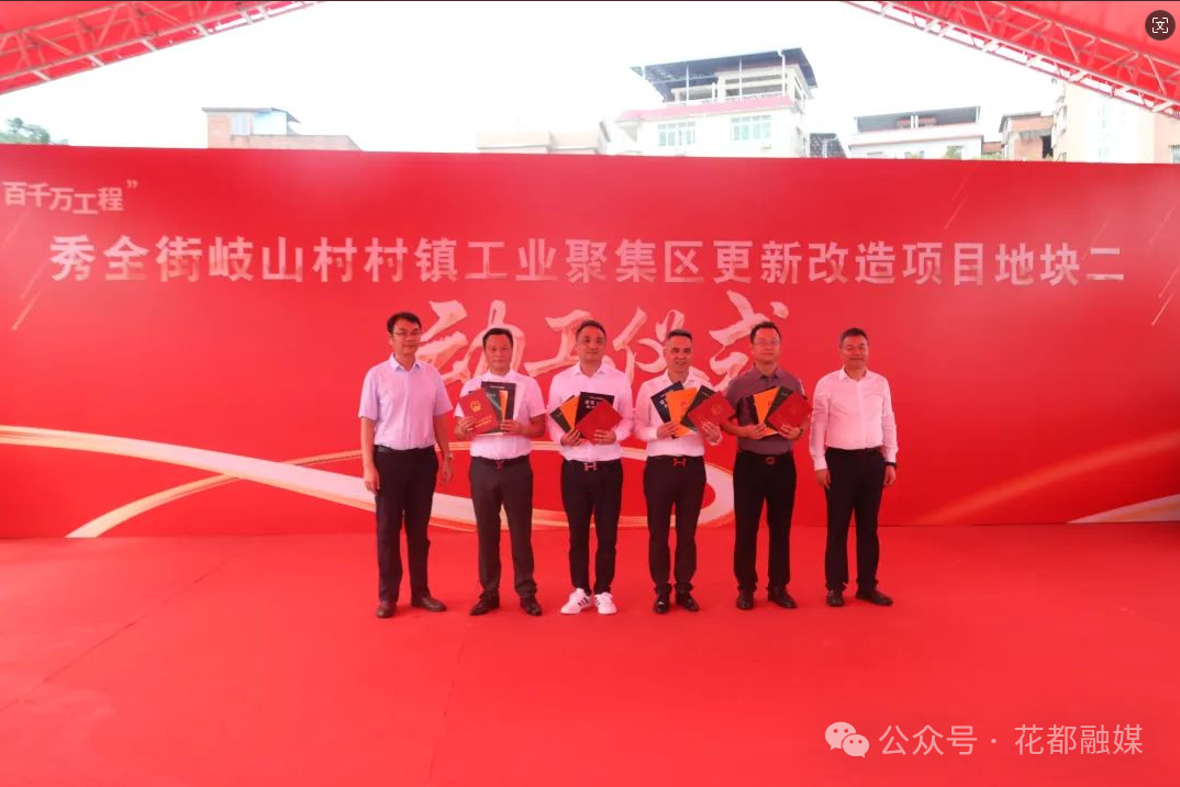 战鼓雷鸣,醒狮助威,动工仪式在热烈的氛围中拉开帷幕。秀全街负责人讲解岐山村村镇工业聚集区更新改造项目的详细情况,详细介绍了项目地块二从闲置用地到高效利用全过程。