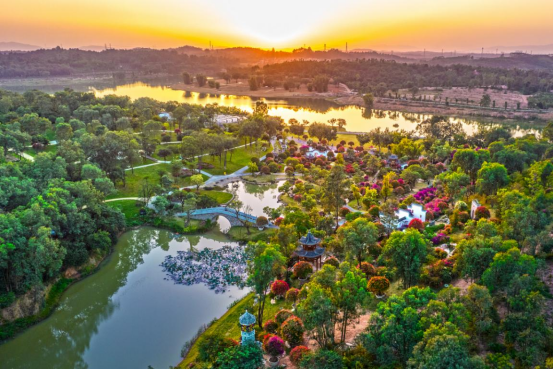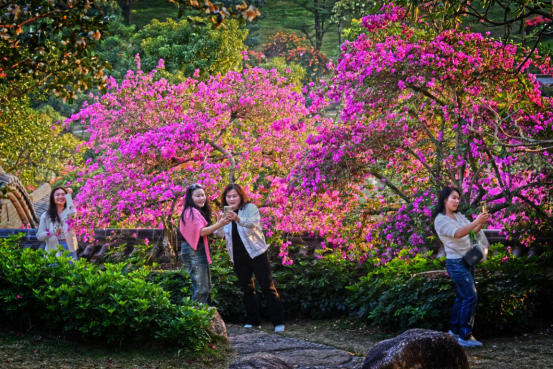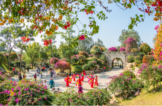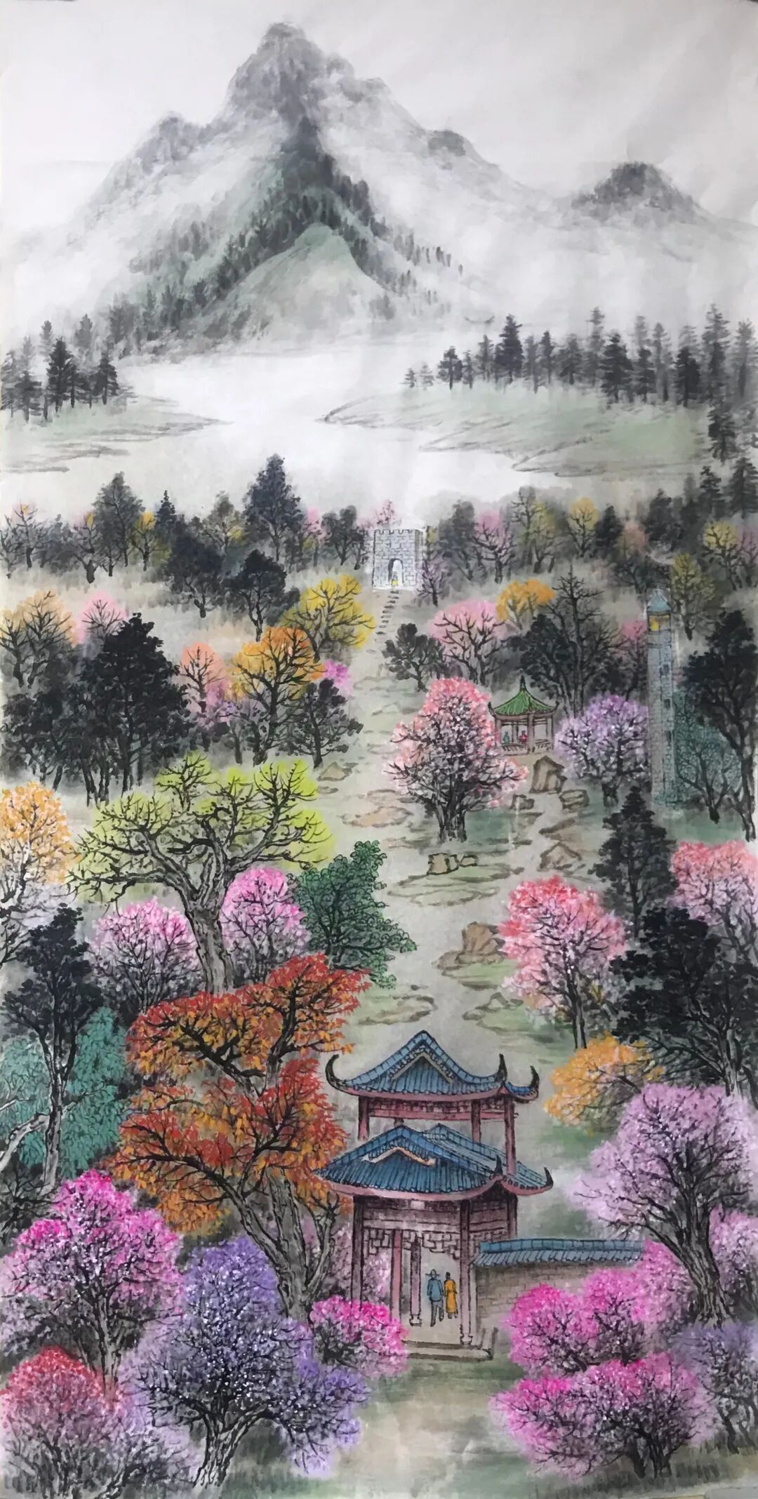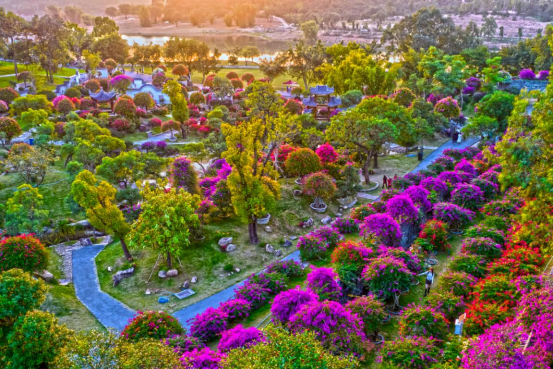 蝶舞蜂飞花影动, 漫天香雾晚霞中。