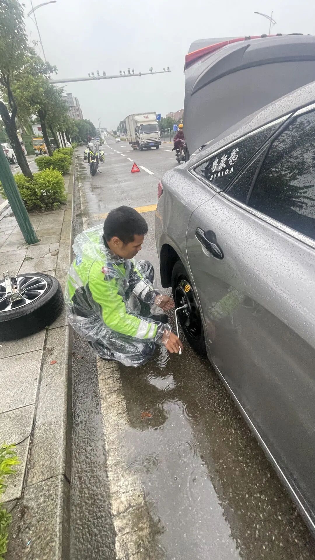 帮助故障车辆更换轮胎