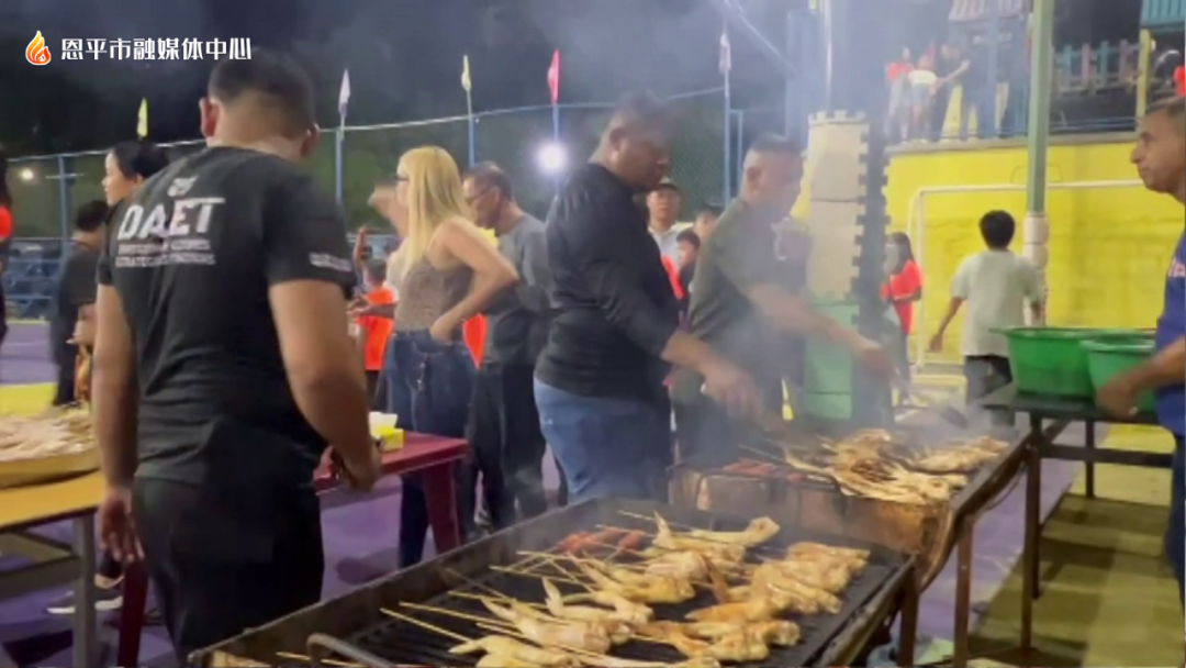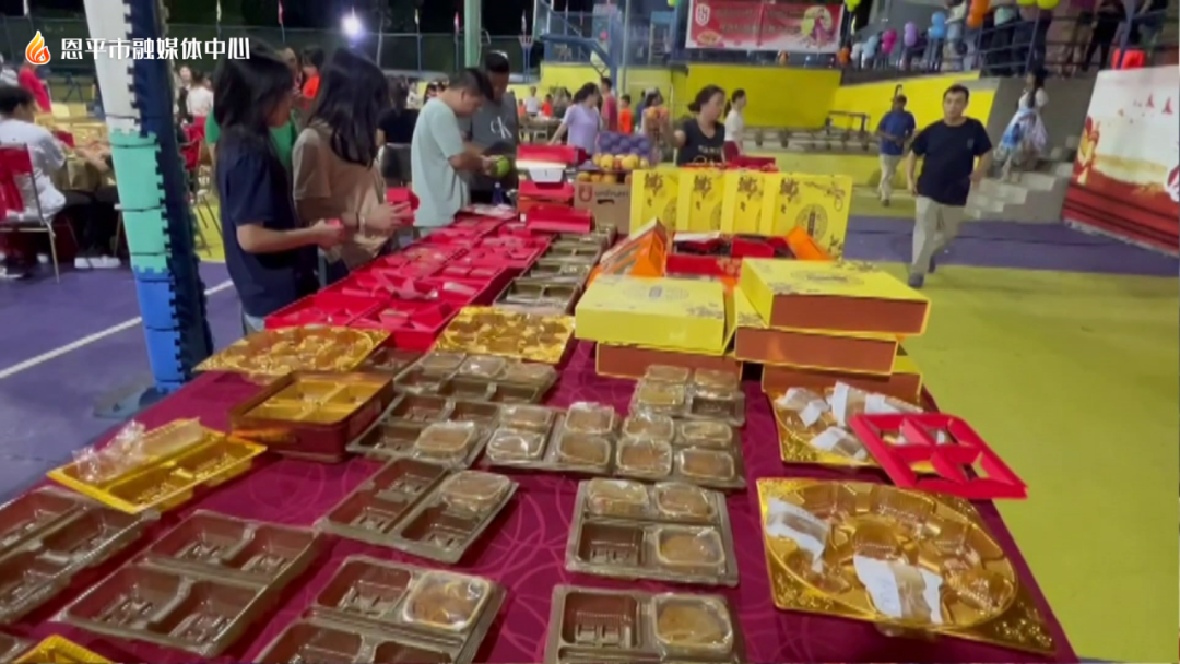 在活动现场,一排排灯笼营造出浓厚的节日氛围,具有家乡特色的恩平濑粉、多种多样的月饼等,各式美食琳琅满目,令人垂涎欲滴。