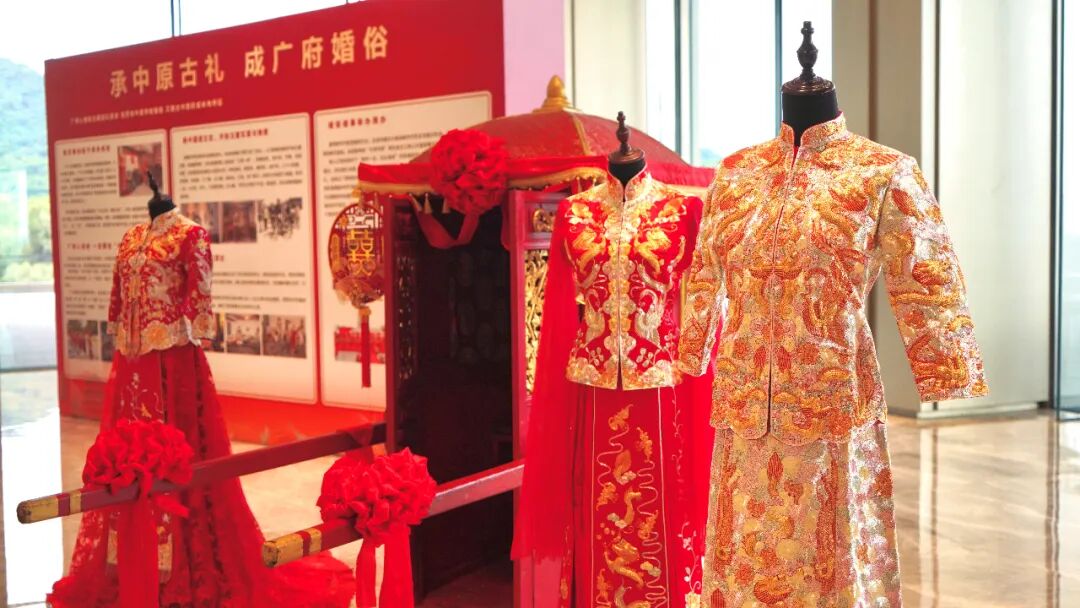 小茹钉金绣裙褂等广府婚俗展陈,静静地诉说着千年广府婚俗故事。今天,新人们的故事,也将与裙褂一同流传下去,成为广府人民心中永恒的记忆。