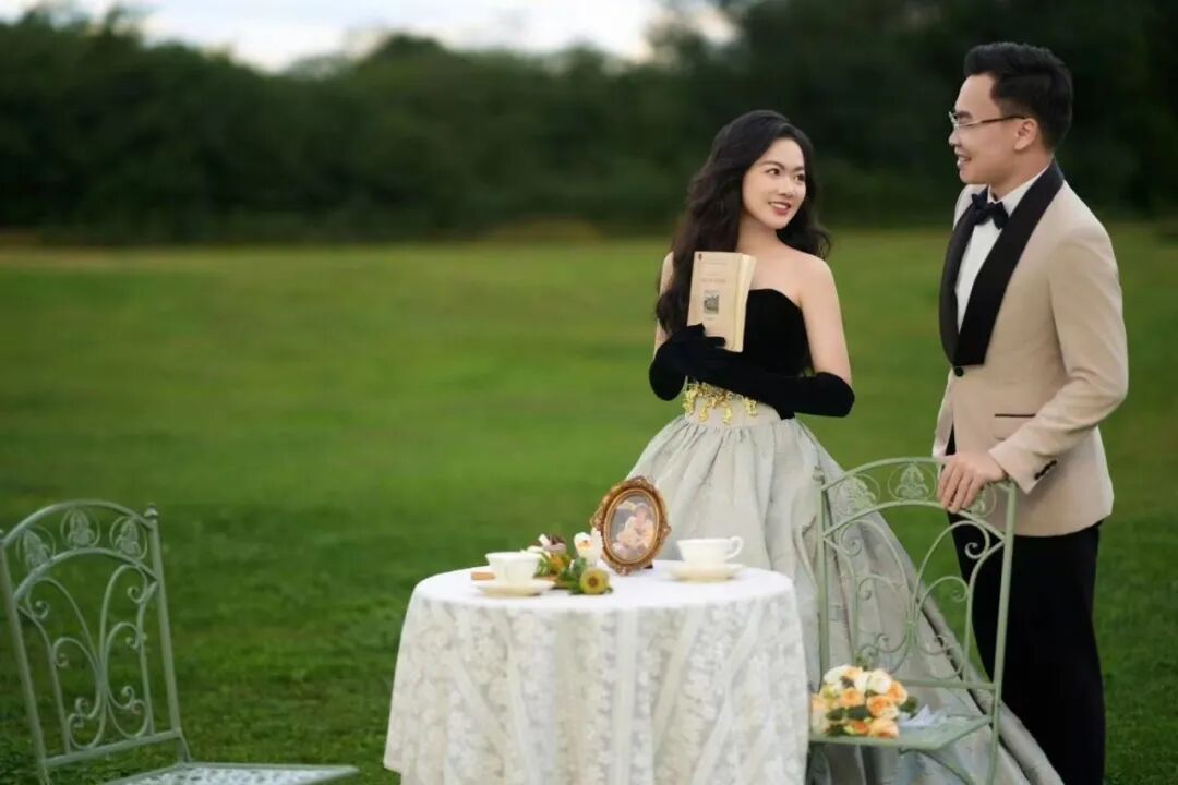 婚礼场地融合了广州独特的悠久历史婚俗文化元素,20多对军人新人将着军装亮相,其他新人着中式婚服出场,打造出既具传统韵味又充满现代感的中式浪漫婚礼。