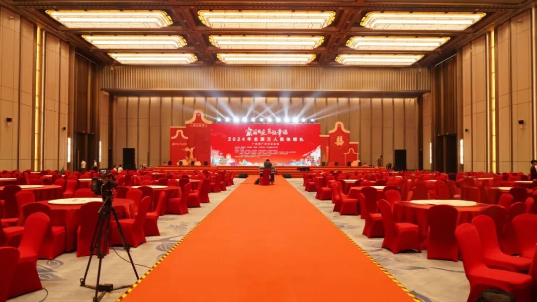 “家国同庆 见证幸福”2024年全国万人集体婚礼,9月22日相约广州白云国际会堂5楼花城厅,89对新人将与全国5000对新人一起许下相守一生、白头偕老的幸福承诺。