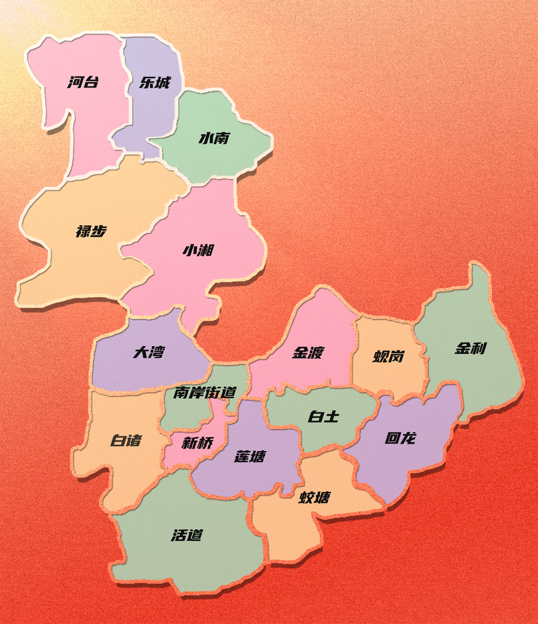 家庭成员:金利镇、南岸街道、金渡镇、莲塘镇、白土镇、禄步镇、蚬岗镇、回龙镇、新桥镇、大湾镇、蛟塘镇、白诸镇、活道镇、小湘镇、河台镇、乐城镇、水南镇。