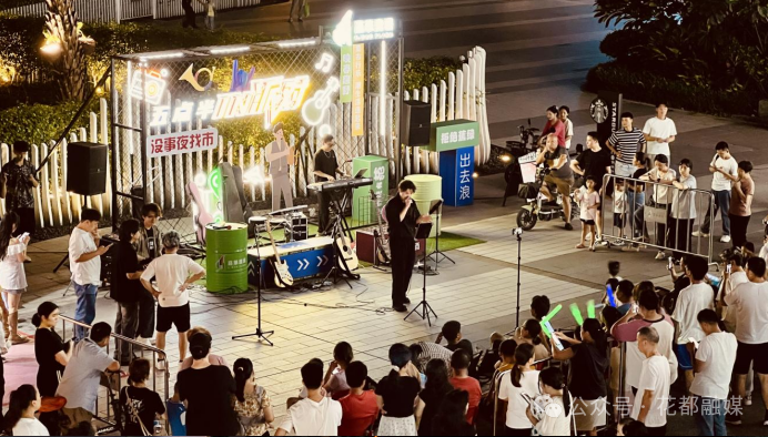 在嘉华广场,“五点半IN派对”在每个周五、周六晚上都会准时上演,超燃乐队现场驻唱,星空音乐会、野性蹦迪、潮流舞蹈轮番登场,让人目不暇接。不仅如此,这里还有艺术潮玩市集、车尾厢市集和旧物淘宝市集,吸引了众多年轻人的目光。