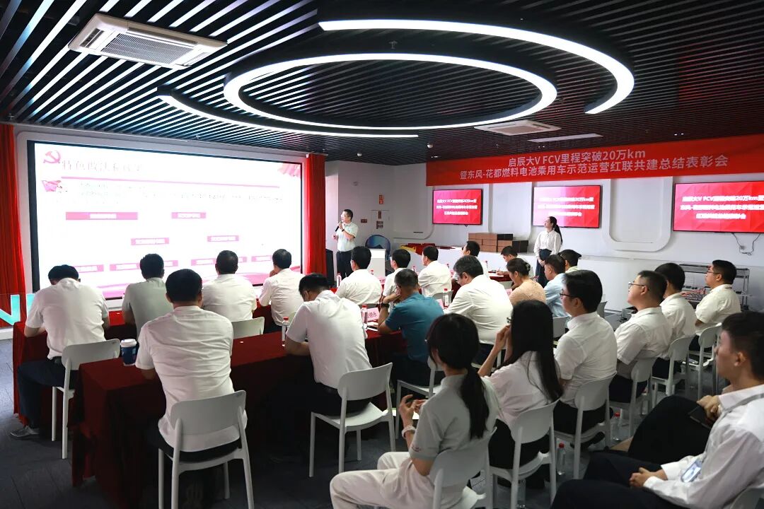 9月26日,启辰大V 氢境氢能源车里程突破20万公里暨东风-花都燃料电池乘用车示范运营临时党支部红联共建总结表彰会在技术中心召开。