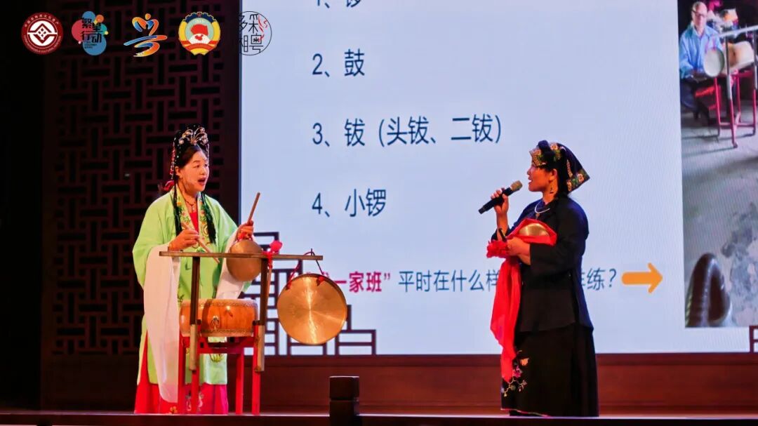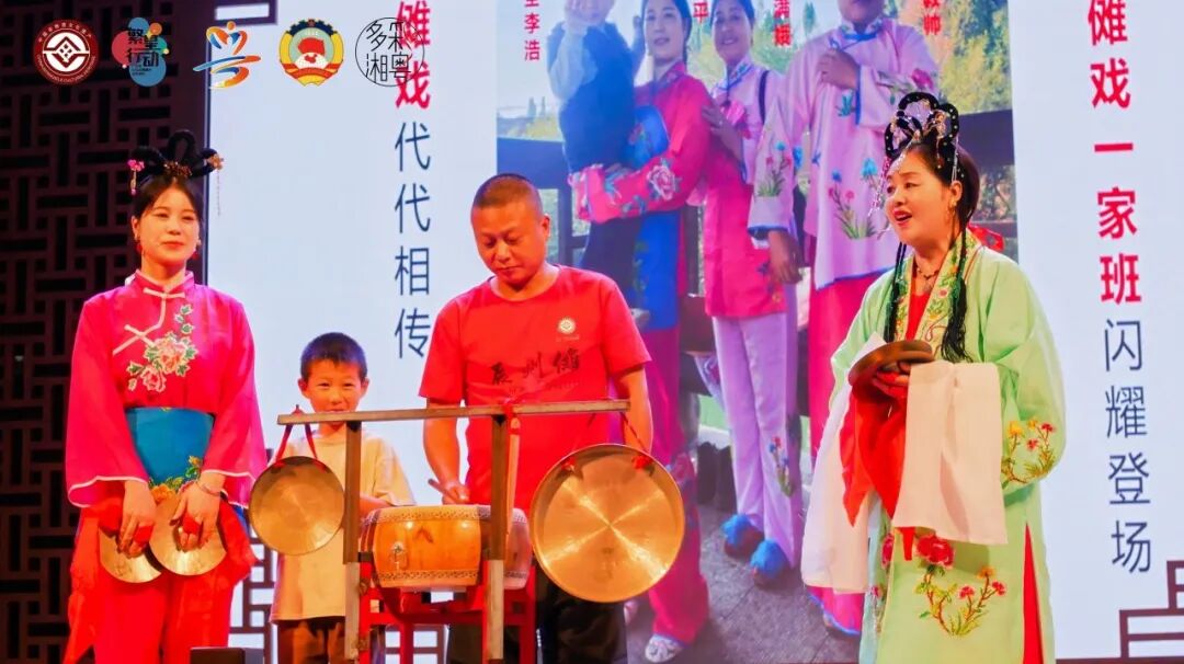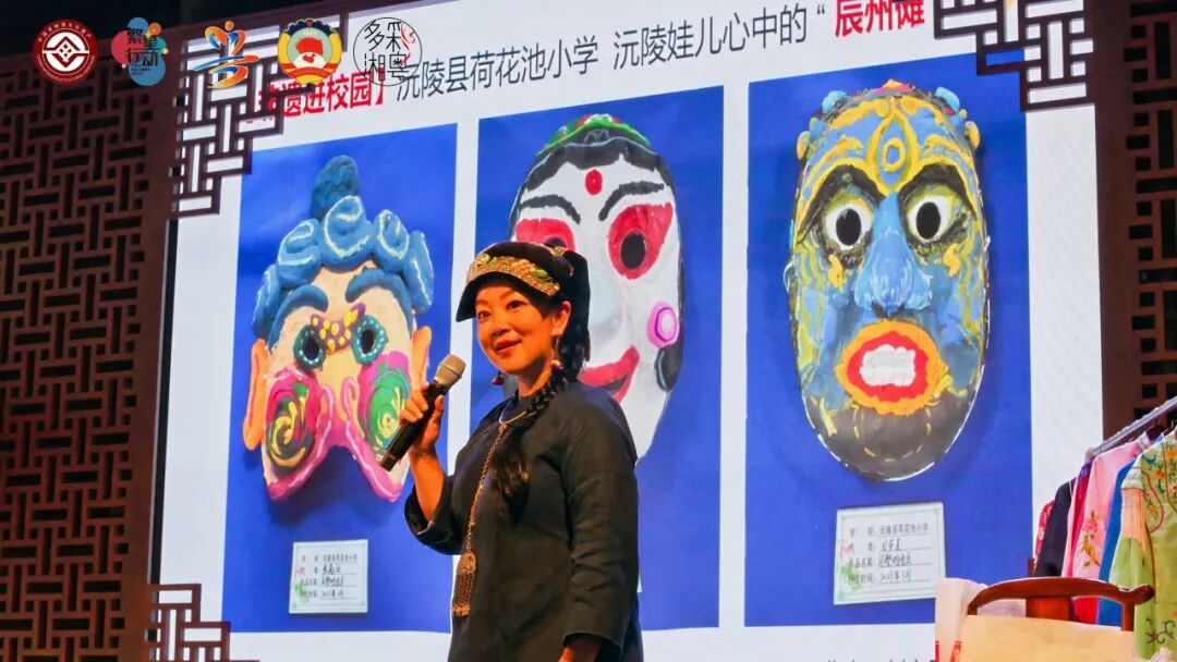 接着,金玲老师为观众播放了一段演唱视频,从中领略中国戏剧活化石“辰州傩戏”的起源和发展,并邀请聂满娥老师携手女儿、女婿和小外甥,“傩戏一家班”登台献艺。小演员才七岁,是辰州傩戏传承新生代,他在舞台上闪闪发光,自信展示擅长的傩戏选段。聂满娥老师以充满力量和情感的演唱,将“辰州傩戏”的古老魅力展现得淋漓尽致,观众仿佛穿越了时空,感受到了古老戏剧的蓬勃生命力。李平老师为观众带来了更为创新的唱腔,是一种更为温婉、更为唯美的听觉感受,她的歌声如同春风拂面,让人沉醉在一种古老艺术与现代创新完美融合的美妙体验之中。值得一提的是,在傩戏演唱的过程中,沅陵县级非遗项目“辰州傩戏”县级代表性传承人全教帅的锣鼓伴奏不断,一家人配合默契,力求将傩戏完整呈现给观众。