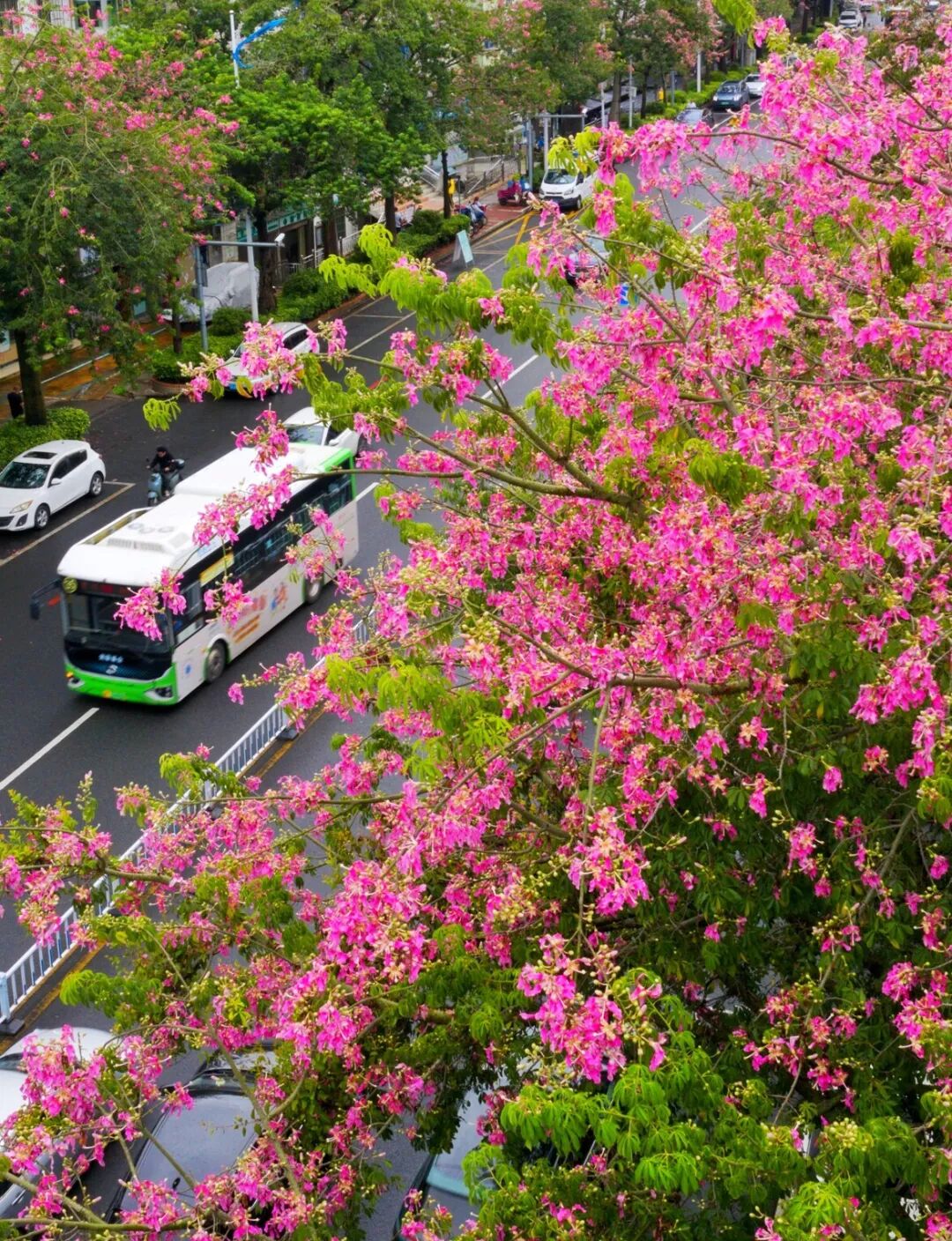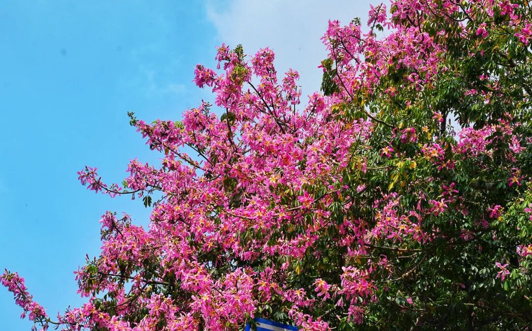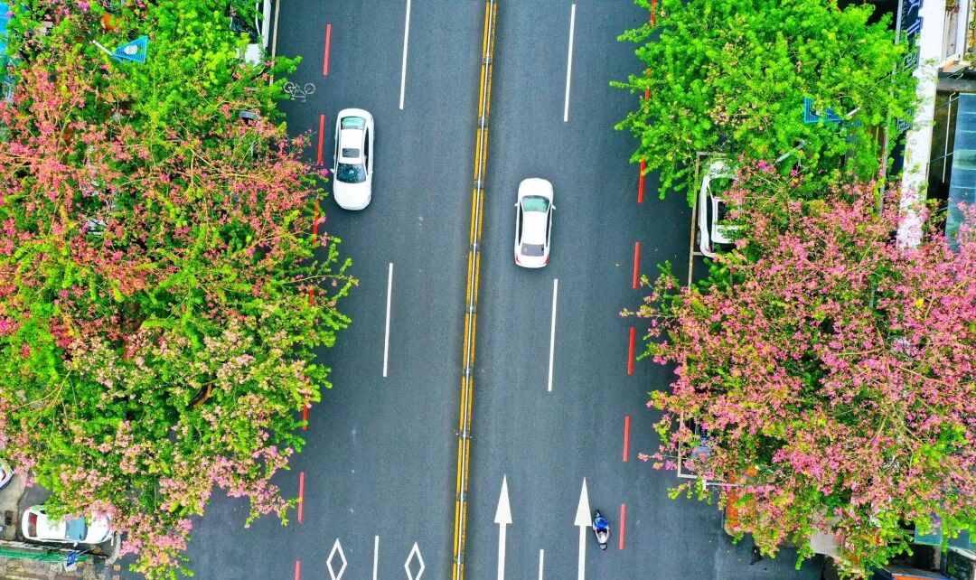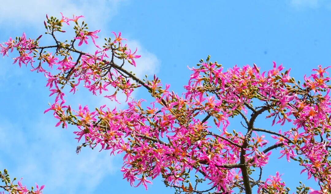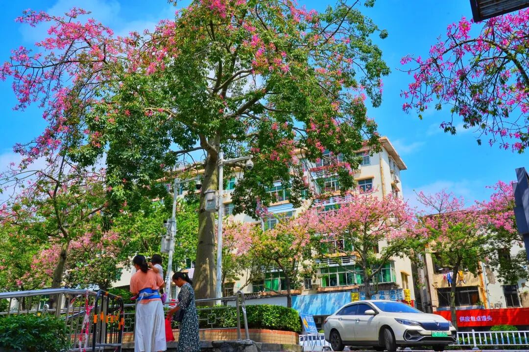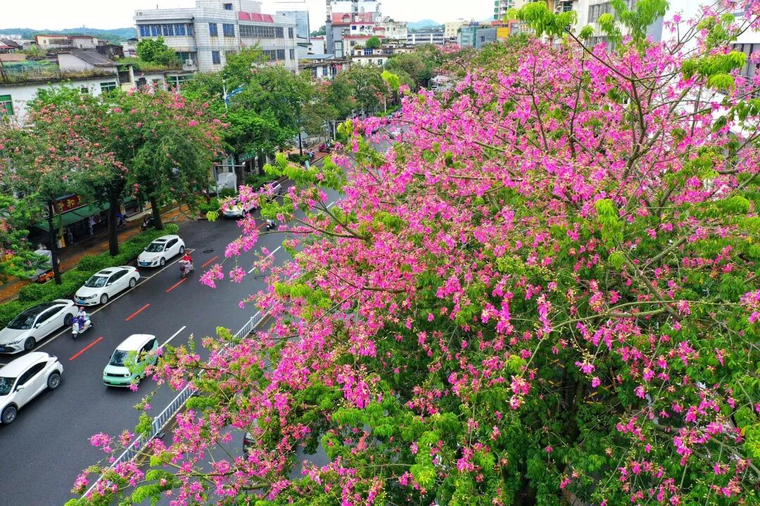 每年9月至12月,在惠城区下角东路道路两旁,异木棉花竞相绽放,变成了一片粉红色的浪漫花海。那粉色的一簇簇的异木棉花,婷婷袅袅,幽香萦绕,成为城市的一道风景线。