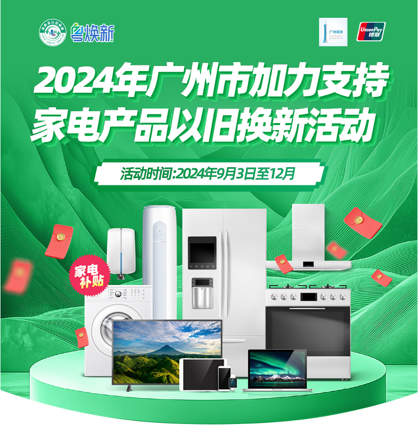 新一轮消费品以旧换新活动中,花都区加力支持推进家电以旧换新工作,涉及冰箱、洗衣机、电视、空调、电脑、热水器、家用灶具、吸油烟机等8类家电产品以及手机、平板、智能穿戴设备等3类数码产品,最高补贴产品销售价格的20%。本次活动将持续至12月31日,补贴资金总额控制,先到先得。