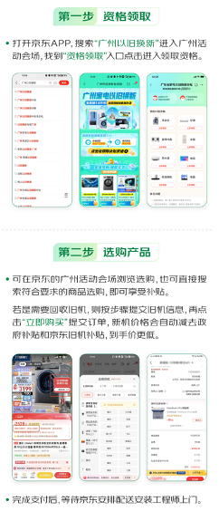 通过银联云闪付“以旧换新”专区或京东、唯品会等APP搜索“广州以旧换新”关键字进入活动页面,点击进入“领取补贴资格”页面,根据需求选择相应品类领取补贴资格券,消费者在付款时,按照剔除该商户的所有优惠后成交价格的基础上再享受政府购置补贴。