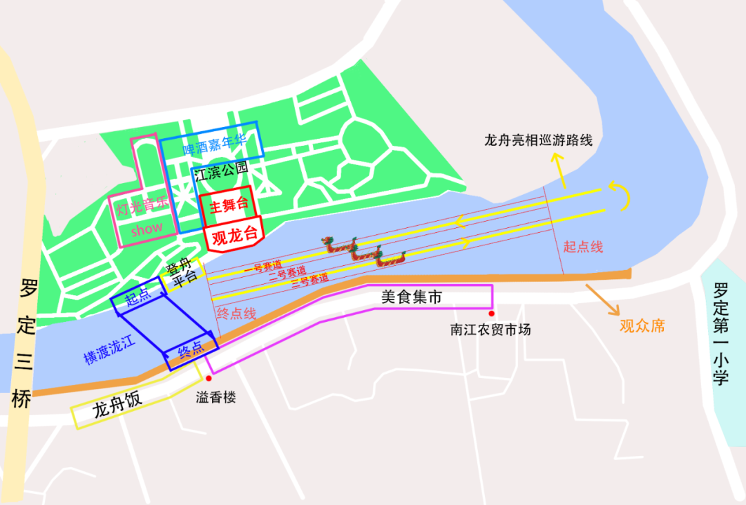 地点:泷江河观龙台前约60米竞渡起点至对岸埠头终点