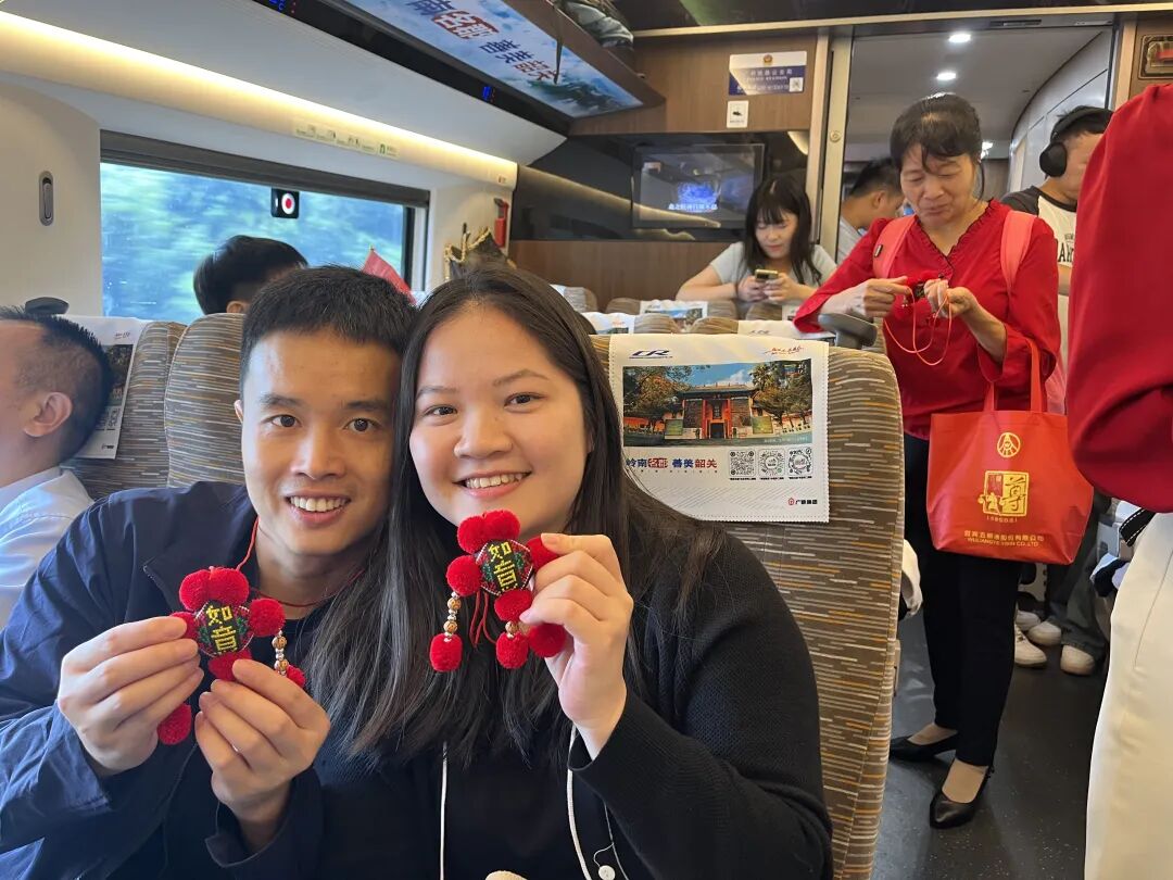 “广府人的故居在哪里”“张九龄的望月怀远谁能背出来”……车厢内,乘客踊跃参与趣味抢答,收获了丹霞山钥匙扣、风采楼冰箱贴、红军长征粤北纪念馆文创笔袋、乳源瑶族刺绣挂饰等韶关特色文创纪念品,惊喜之情溢于言表。“早就听说过丹霞山,一直想找机会去。有了‘韶关号’,更想去看看了。”潮汕乘客王先生说。