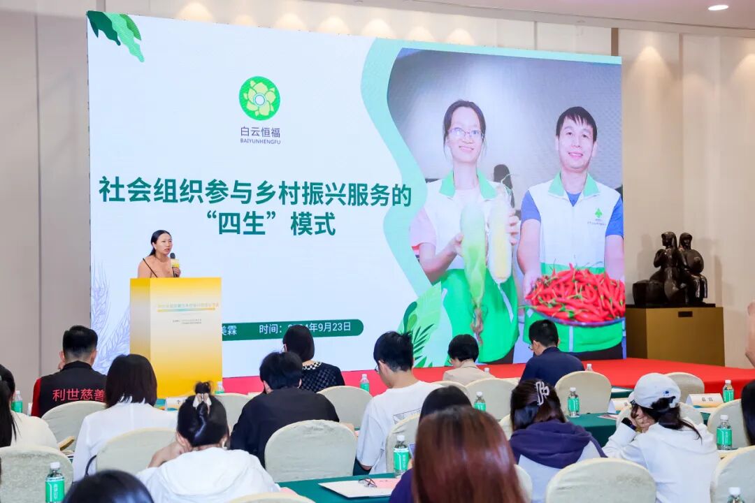 李美霖总干事代表广州市白云恒福社会工作服务社,分享了该机构在乡村振兴中的实践与深思。依托供销社背景,白云恒福实施的“白云供销农村社区综合服务项目”,由白云区供销总公司资助,践行“四生”模式,即助农生产、生计发展、美好生活、生态宜居协同并进,紧密对接乡村振兴国家战略及《乡村振兴促进法》要求。
