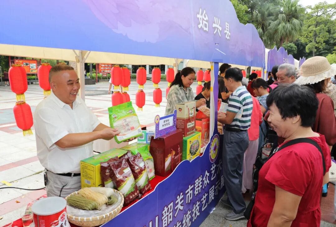 巡游活动开始前,陈少荣、陈志清、凌振伟等市领导来到传统技艺展示展销体验区,观看体验我市乐昌沿溪山茶、宰相粉、石塘堆花米酒、火山蕉叶糕等多个非遗产品及花生饼、白土油鸡饼等地方传统特色小吃。展销区还展现了一批造型精美的西村窑陶瓷,历史悠久的狗牙绣,具有强烈岭南艺术风格的张氏木雕等工艺品。这些极具地方特色的产品赢得了现场群众的青睐,进一步加深了市民和游客对我市非遗和地方特色文化的了解。