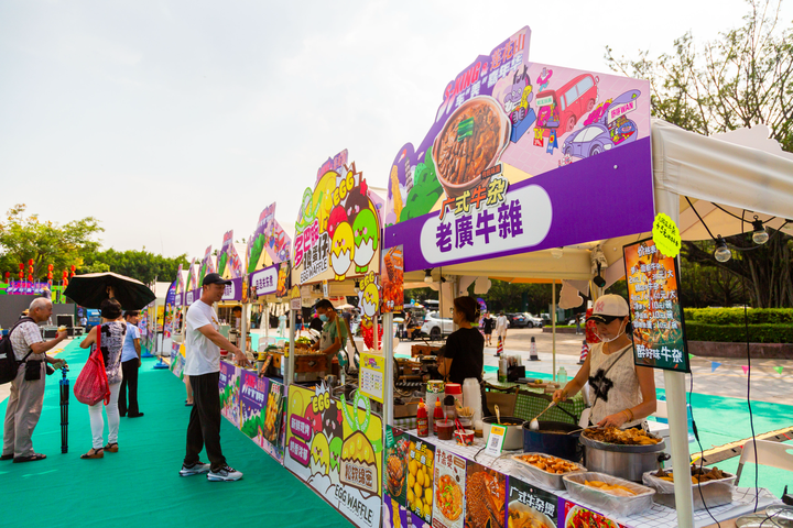 在本届登高文化旅游节中,莲花山景区在文艺活动的形式和场地方面突破常规,首次引入车尾集市嘉年华,为游客带来了别样的国潮新风尚体验。记者看到,一辆辆汽车后备箱被车主们精心装点,变成了一个个有趣的探索空间,同时还有许多国潮小摊位,从复古怀旧到前卫现代,从手作小铺到潮流单品,各式新潮零食饮品、特色文创产品琳琅满目,让游客们目不暇接。更有趣味涂鸦、汉服巡游、音乐演出等精彩活动同场助阵,使得整个景区充满了欢乐与活力。从顺德过来的游客吴小姐说:“我经常带爸妈来莲花山玩,这是第一次看到莲花山的车尾集市,感觉还不错,逛得停不下来,买了好多有趣的小东西。我自己还做了一把漆扇,很好玩。”