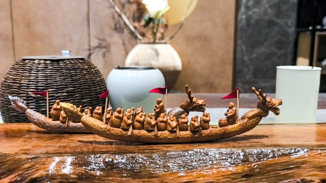 此外,罗定龙舟赛的成功举办还为城市文化的传承和创新注入了新的活力。其中,学校以社会实践形式,带领学生参与创业活动;罗定榄雕非遗手艺人梁可钧以榄核为纸,刻刀为笔,精心雕琢出两艘栩栩如生的榄核龙舟;茶艺技能云浮市首席技师彭洁娥以茶为媒,创新性地推出了龙舟茶。这些文化创新活动不仅为龙舟赛增添了浓厚的文化氛围,也为罗定城市文化的传承和创新提供了新的思路。“我们将理论知识转化为实际操作,加深对知识的理解和记忆,也为我们提供了展现自我、探索未知的舞台,是一次很好的历练。”学生梁铭茵说。