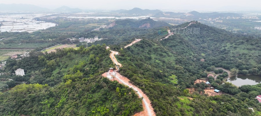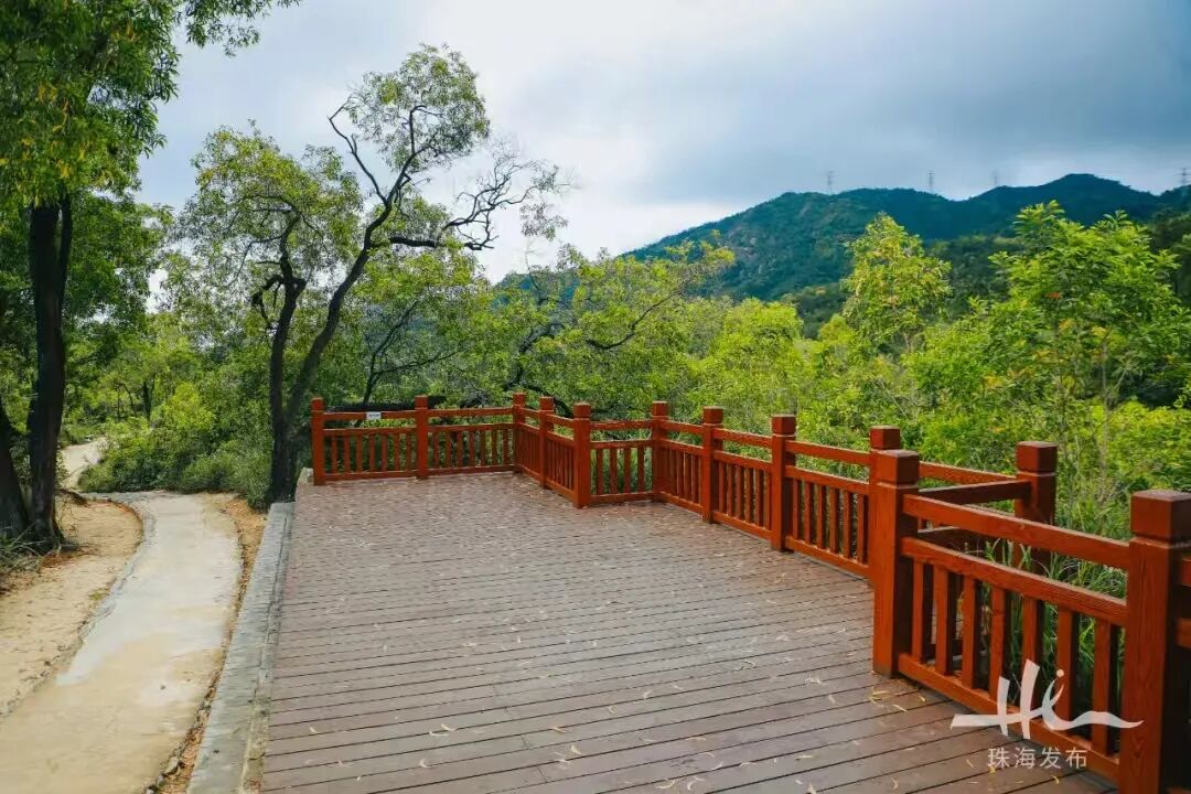 五指山山野步道——石龙村段登山步道入口位于斗门区石龙村土地湾,全长1119.8米。从空中俯瞰,步道宛若一条飘落在五指山的“银丝带”,沿着山体蜿蜒起伏,在茂盛的绿茵丛中若隐若现,与自然融为一体。