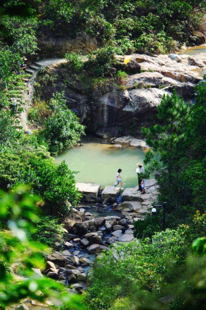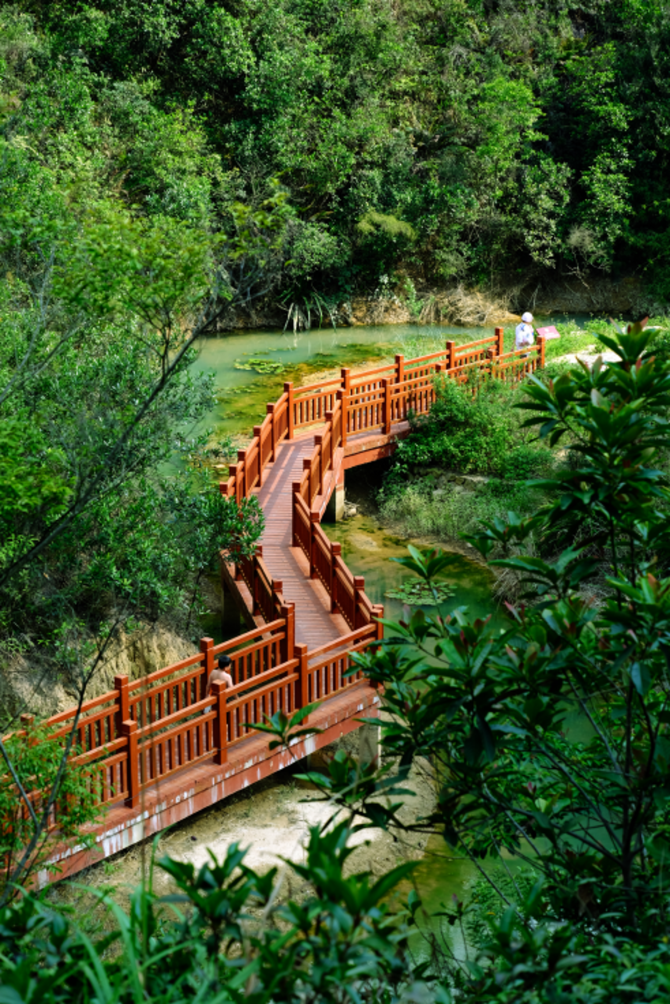 不必远行,在红花山森林公园步道,沿途便可欣赏到“小九寨沟”景观,一不小心就误入“桃花源”。