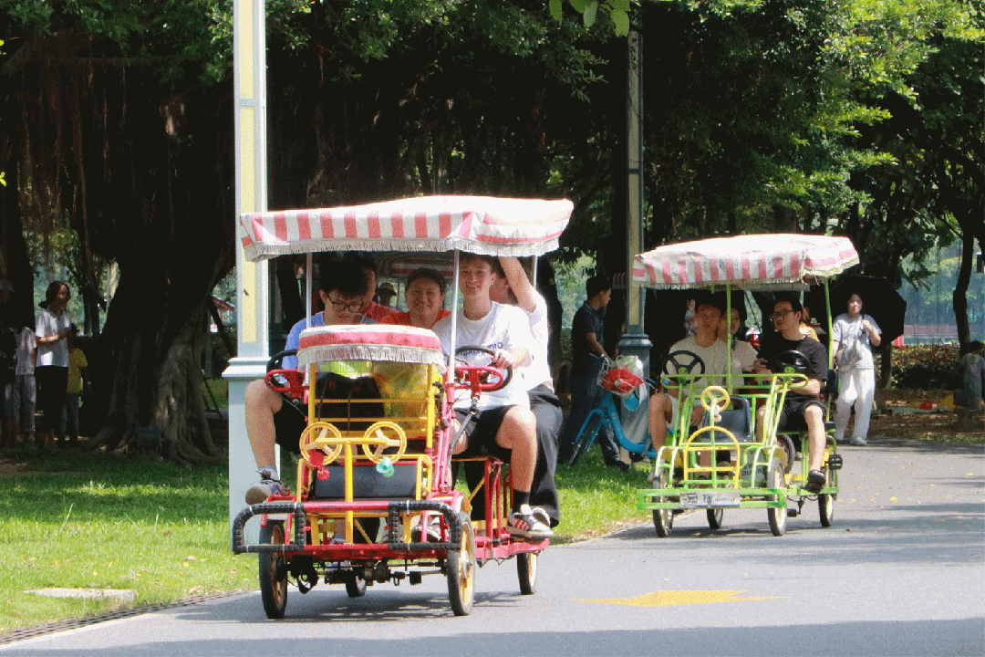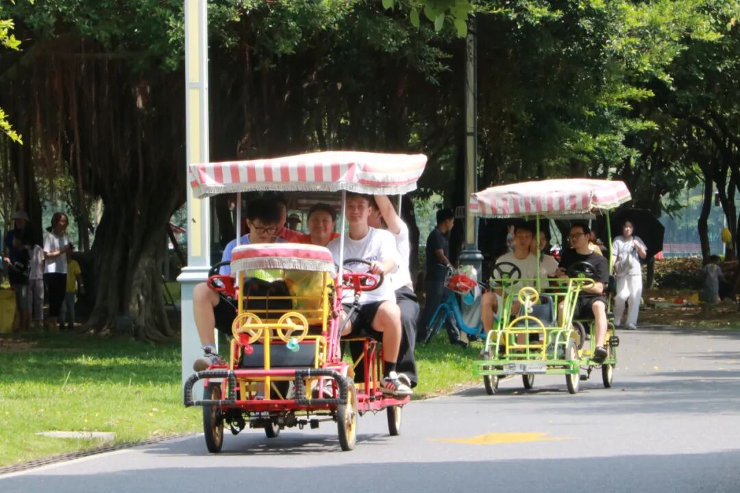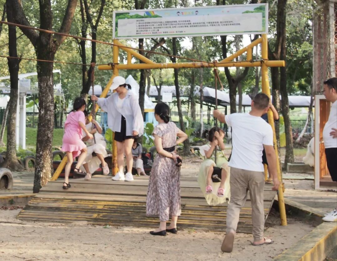 昆虫小火车、萌宠乐园、活力大冲关……各种玩法层出不穷,吸引不少游客来到创艺生态园。在感受户外烧烤的乐趣之余,不少家长陪孩子们畅玩园区内各种有趣好玩的无动力项目,在嬉笑玩乐中亲近自然,度过欢乐时光。