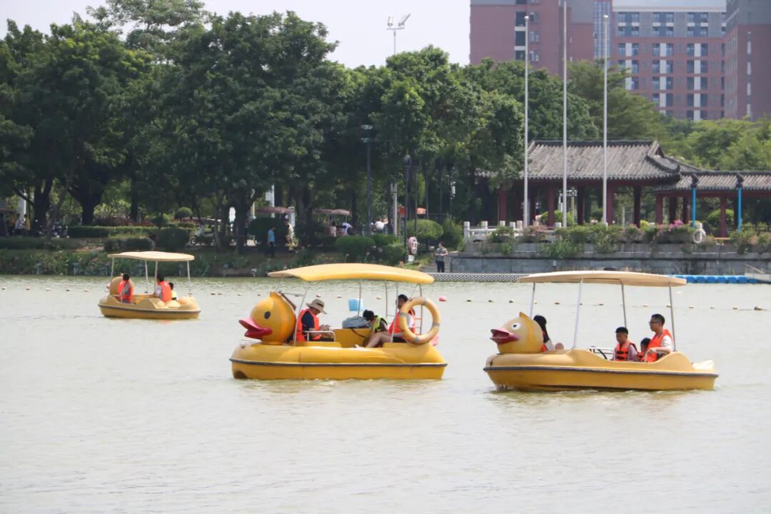国庆假期,麻涌华阳湖以最美的姿态迎接八方游客。在环湖碧道上,游客选择骑着观光自行车环湖游览;在波光粼粼的湖面上,亲子家庭泛舟游湖感受微风拂面,倾听鸟吟虫鸣。