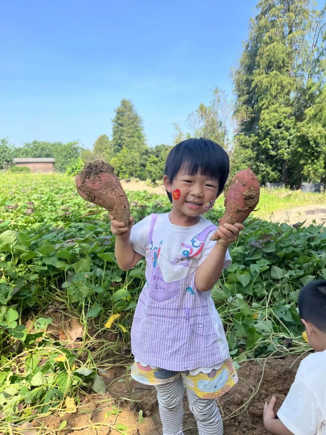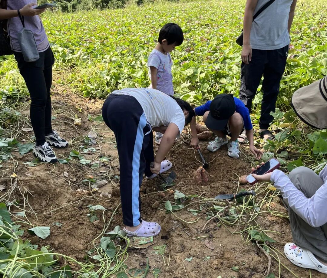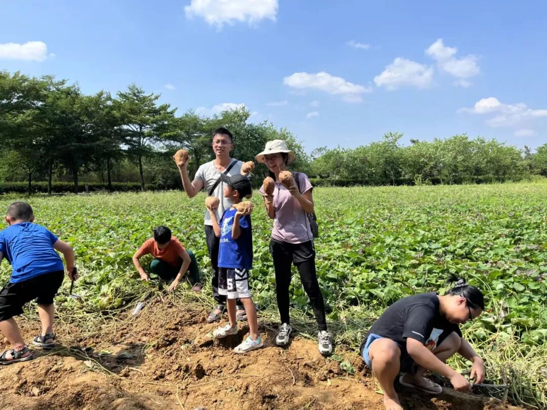 “让孩子在亲手劳作中,亲近大自然,感受‘粒粒皆辛苦’。”在古梅生态农业园,赵先生一家趁着丰收季带孩子体验收获的喜悦。在长势喜人的红薯地里,孩子们化身“小小农夫”,在爸爸妈妈的帮助下,沉浸式体验农耕乐趣。