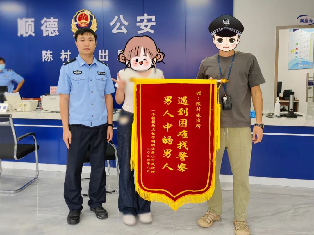 民警随即上报顺德分局反诈分中心,对涉案的银行账户信息进行梳理排查,争分夺秒与犯罪分子赛跑。功夫不负有心人,9月16日,民警不懈努力成功追回2万元并交还李女士,9月20日,李女士定制了一面锦旗,满心欢喜地交到了民警手中,并通过佛山公安局长信箱写信,表达对民警成功挽损2万元的感激之情。