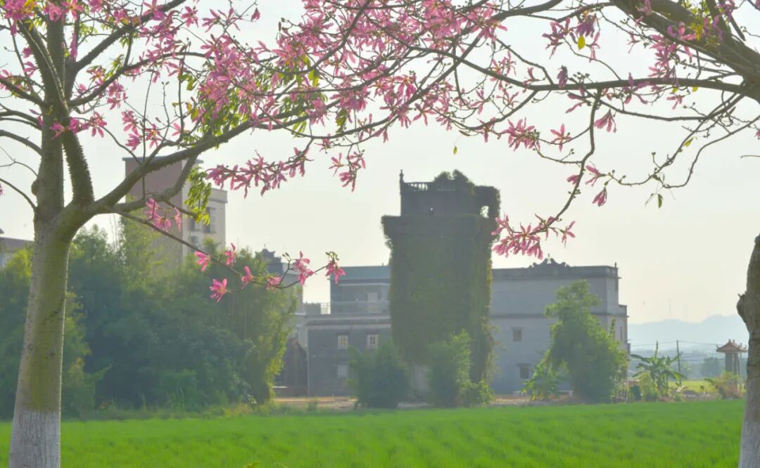绿树粉花巧妙地融为一体。