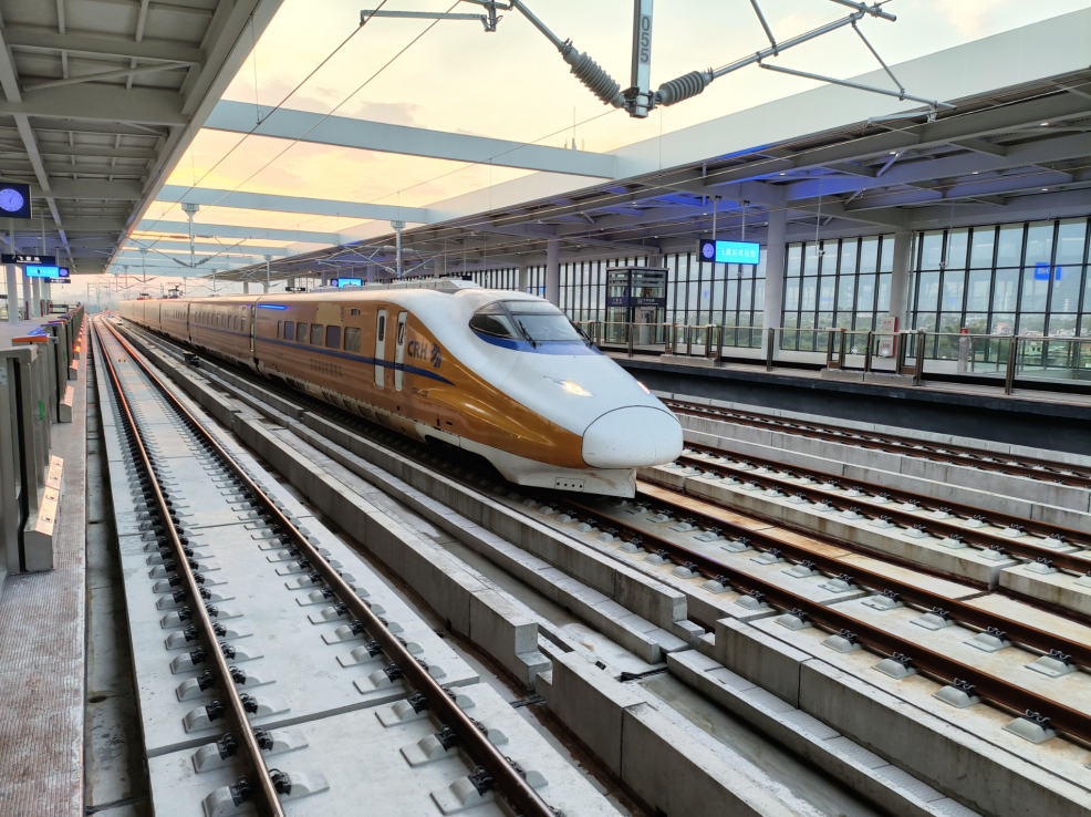 广州地铁介绍,广清城际北延线逐级提速试验期间,CRH2J-0205综合检测列车分别以5个速度级在清城站至飞霞站进行往返试验,列车运行速度由160公里/小时逐级提升至200公里/小时,并最终至220公里/小时,达到工程设计速度的110%,验证了工程的安全裕量。据现场检测数据显示,列车试跑过程中,轮轨关系、弓网关系、车辆平稳性、轨道质量指数、接触网平滑性等指标均符合行业规范要求。