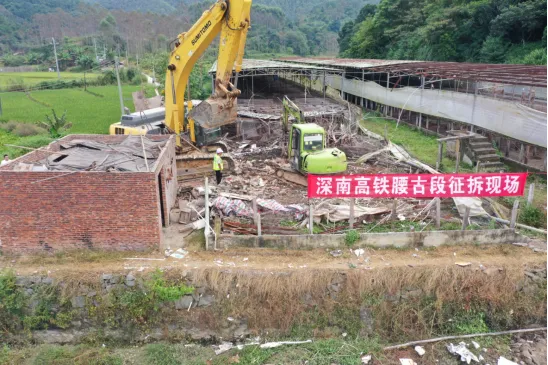 10月7日上午,云城区腰古镇开展深南高铁SNSG-3标段(腰古段)两个养殖场的拆除工作。这两个养殖场的位置位于腰古镇仙坑村,现已拆除完毕,标志着深南高铁腰古段征拆工作全部完成。征拆地段已交付珠肇公司,接下来将进入全面施工阶段。