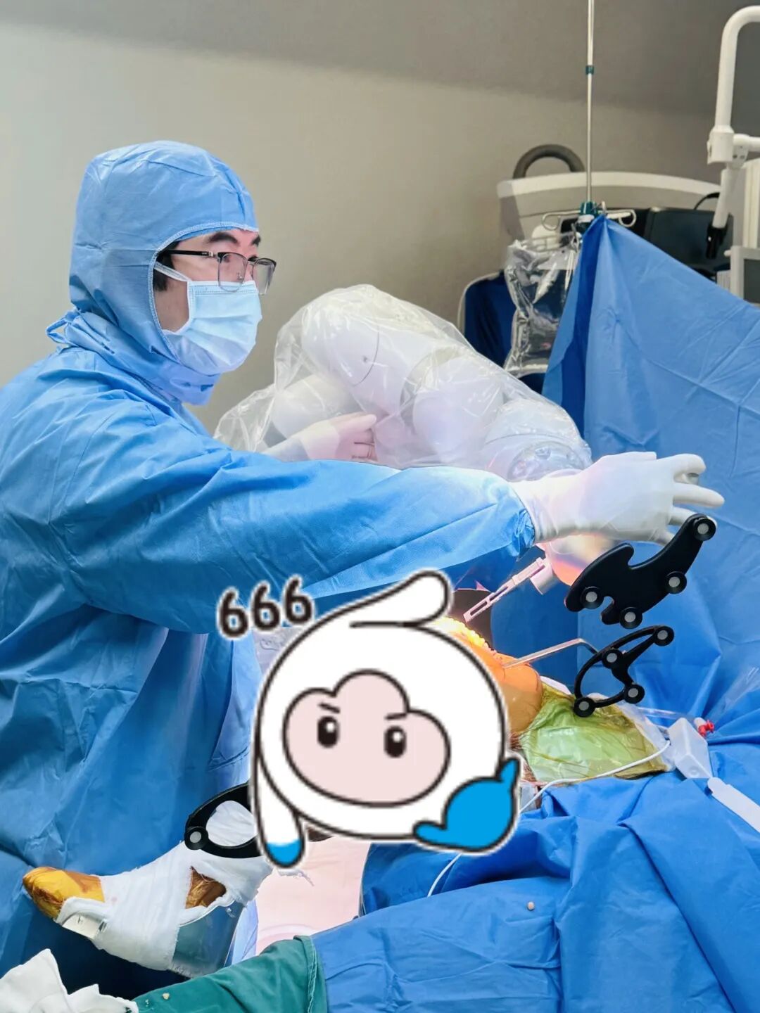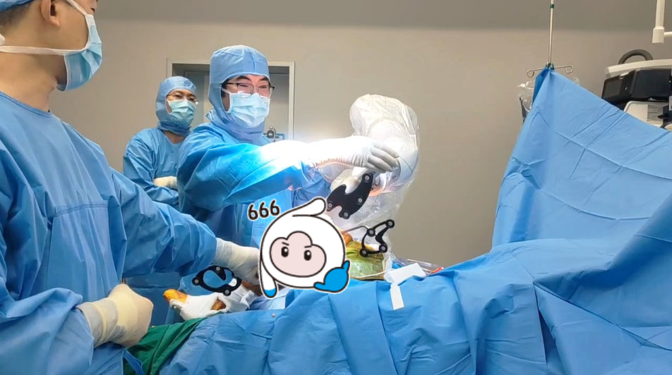 术中宋斌团队对关节手术机器人的精准操控,实现了对手术区域的精确定位和动态跟踪。机械臂的稳定性和灵活性使得手术操作更加精细、准确,能够在极小的误差范围内完成复杂的截骨步骤。这不仅大大降低了手术风险,减少了对周围组织的损伤,还提高了手术效率和患者术后的舒适度。