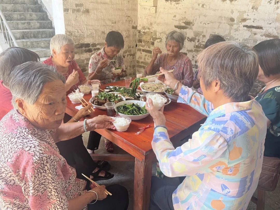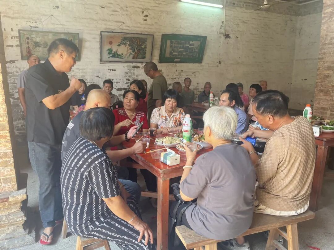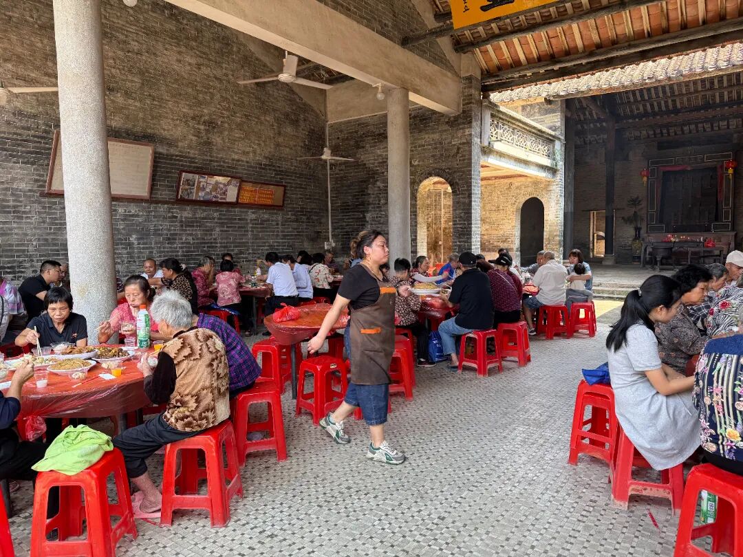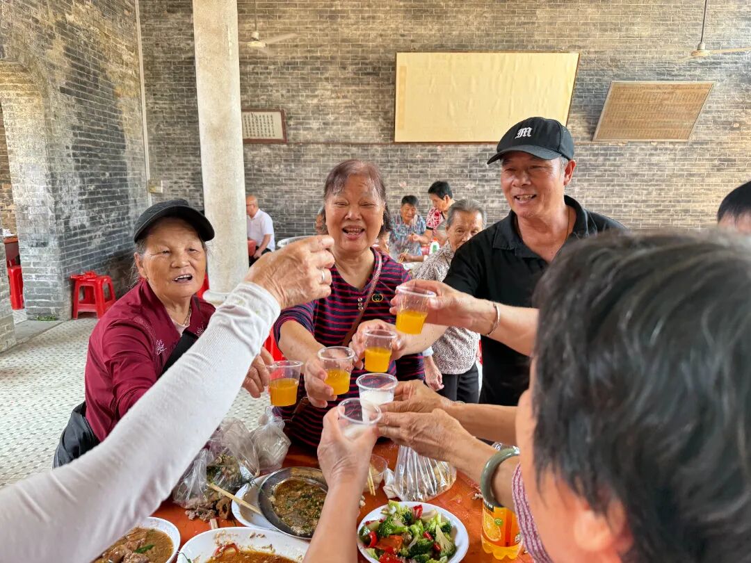 在一村社区黎家祠堂,这里也举办了重阳宴非遗文化活动,老人们聚在一起拉着家常,诉说着感情。