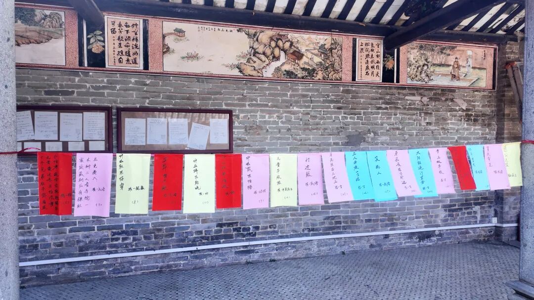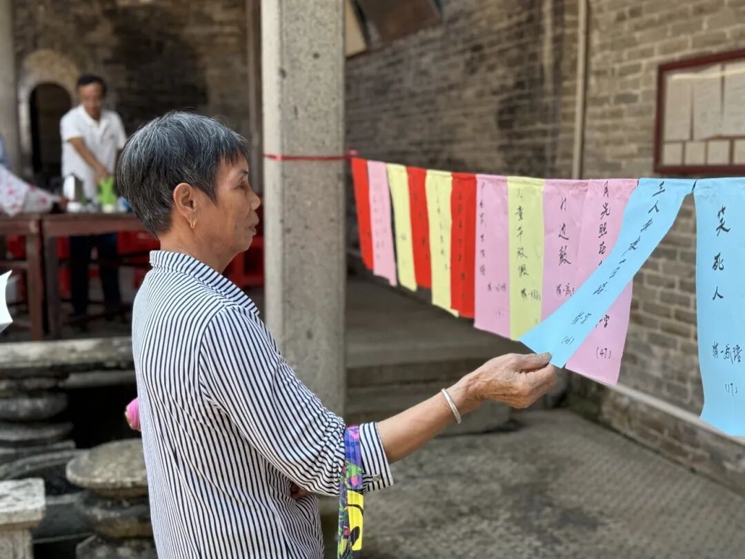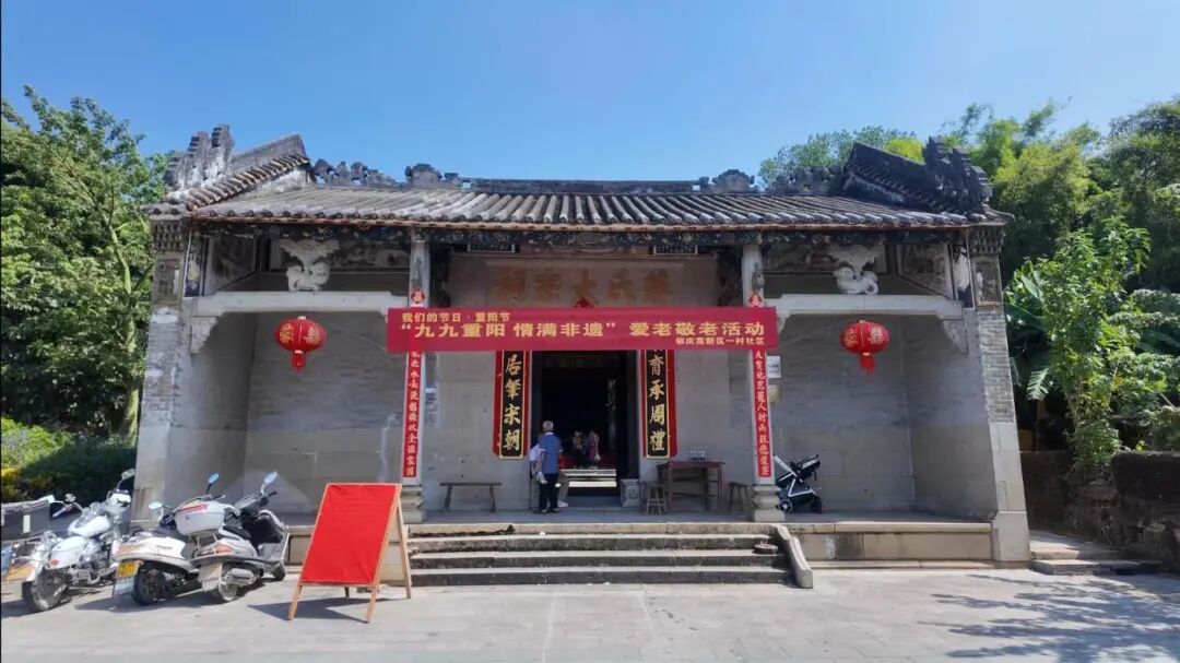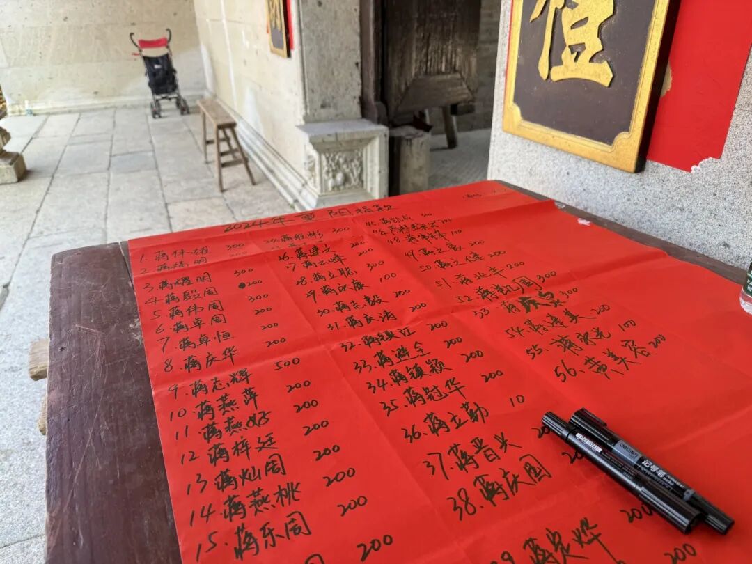 一大早,一村社区不少村民们来到祠堂挂横幅、摆桌子、贴告示……开始为接下来的重阳宴做准备。据了解,一村社区蒋家村、黎家村等村落每年都会在村里的祠堂举办重阳宴。