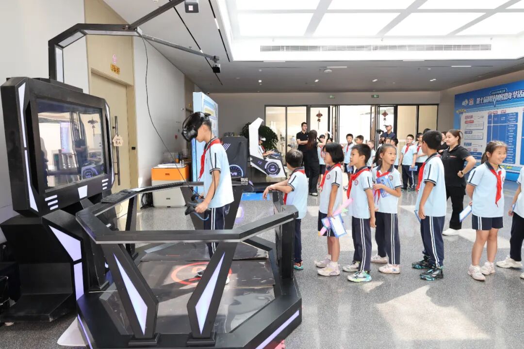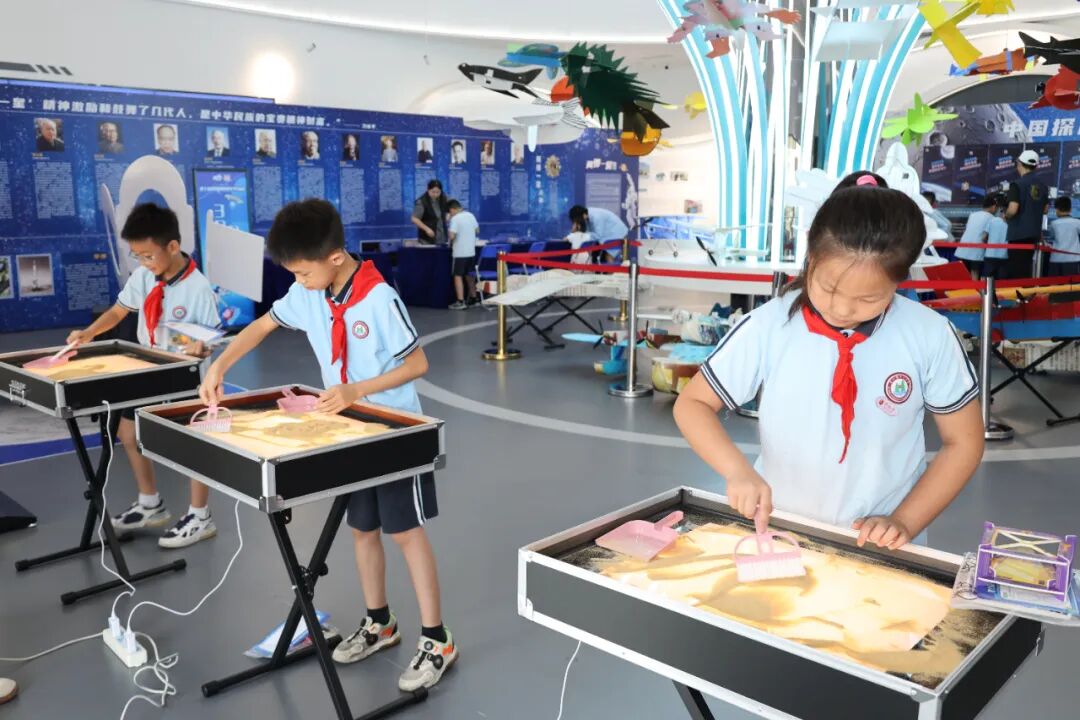 现场还设置各式各样的科技展览以及VR、沙画、诸葛机关、仿生鸟飞行、非遗水拓印画体验等丰富多彩的科技体验项目,学生们被各种奇妙的科技项目深深吸引,动手操作科技实验项目,体验了科学的乐趣。