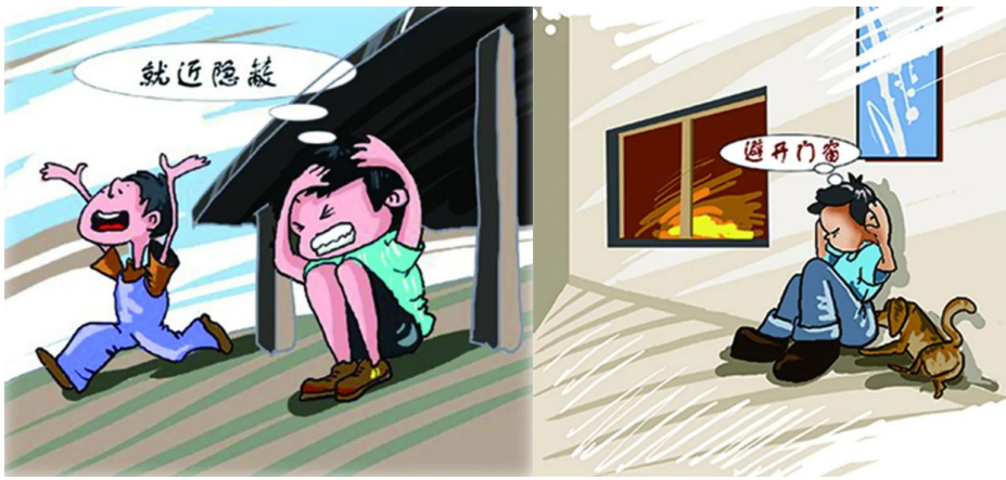 听到预先警报时,在房间的玻璃窗上应贴上“米”或“井”字形的纸条或布条,以防玻璃伤人。