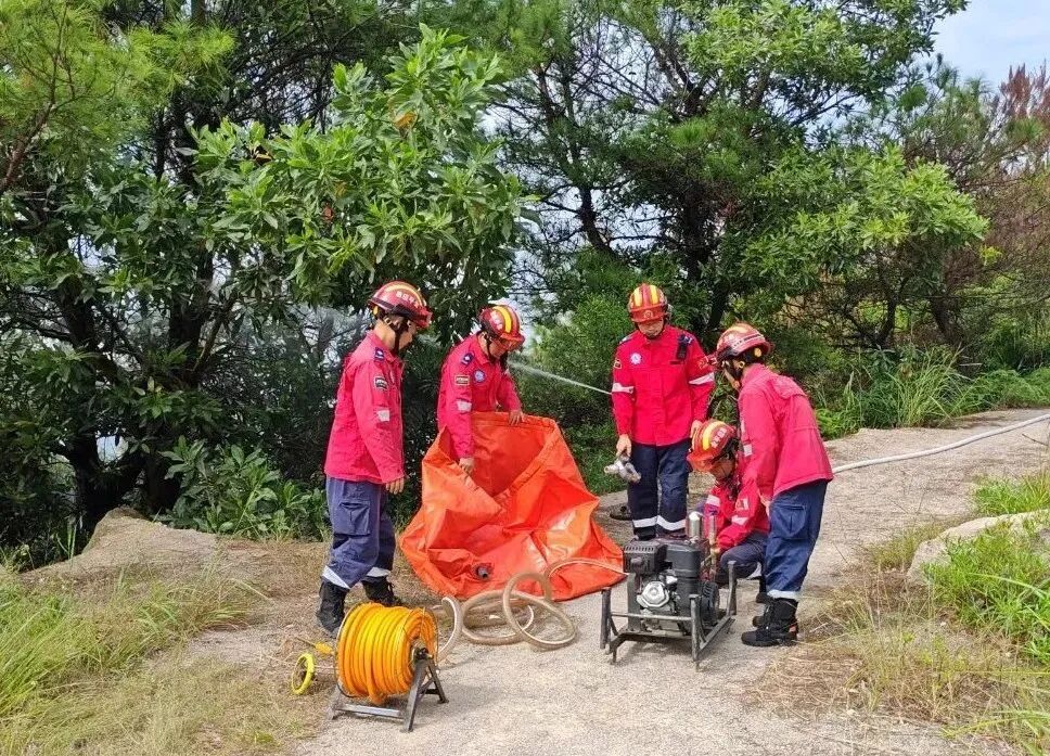 此次演练模拟鮀江街道山上发生火情,属地街道快速响应,组织半专业扑火队伍使用消防管网扑灭明火。因火情扩散,金平区应急管理局组织汕头市蓝天救援队进行增援,共同扑灭多处火点。